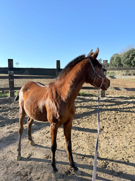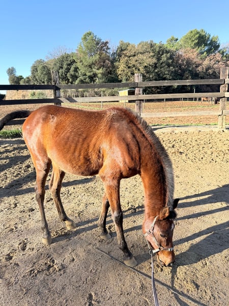 Potro de 3 años, Poni C, con un carácter noble y equilibrado y un físico muy bien conformado. Destaca por su buena estructura, movimientos correctos y una presencia que no pasa desapercibida. Es un poni muy versátil, con un futuro prometedor tanto para ocio, competición en cualquiera de sus disciplinas o rutas, adaptándose fácilmente a distintos tipos de trabajo. Actualmente ya está en la cuerda, mostrando buena actitud y disposición al aprendizaje. Se deja tocar sin problema por todo el cuerpo, es muy cariñoso, cercano y confiado con las personas, lo que lo convierte en un compañero ideal tanto para adultos como para niños con cierta experiencia. Vive en manada, por lo que está bien socializado, pero se adapta perfectamente a la vida en cuadra sin mostrar estrés ni malos hábitos. Un poni con buena cabeza, fácil de manejar y con una base excelente para seguir formándolo a gusto de su futuro propietario.