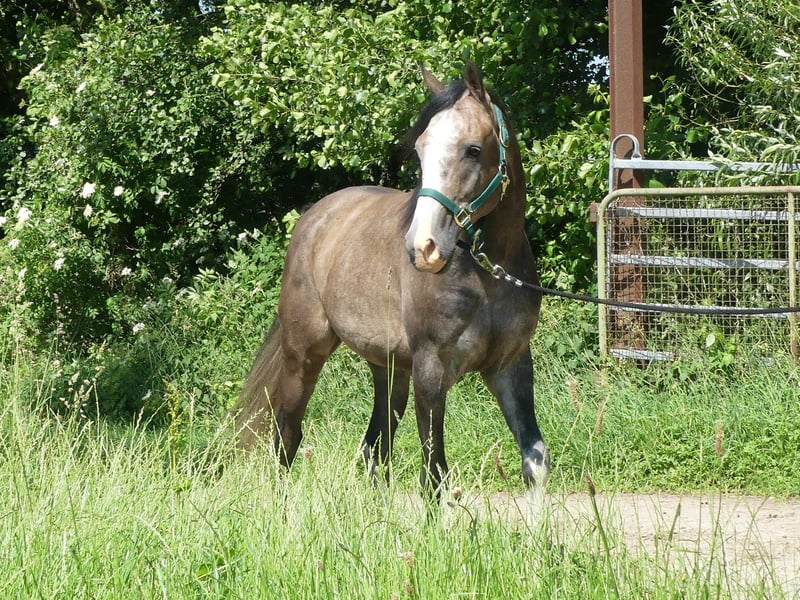 "Echalon" ist ein großrahmiger und korrekter junger Wallach. Er wird in der Bahn sowie auch im Gelände geritten, allein und in der Gruppe. Echalon ist sehr gelassen und hat es nicht wirklich eilig. Auch mit nicht so starken Reitern kann er sich gut arrangieren und läßt sich nicht so schnell verunsichern. Echalon ist bestens sozialisiert und lebt in unserer Wallachherde derzeit noch 24/7 auf Weide, kann aber auch problemlos mit Boxenhaltung und täglichem Weidegang umgehen. Im Umgang ist er artig und unkompliziert. Gesund und ohne Fehler, mit Abstammung/Equidenpass. Regelmäßig geimpft und entwurmt.
