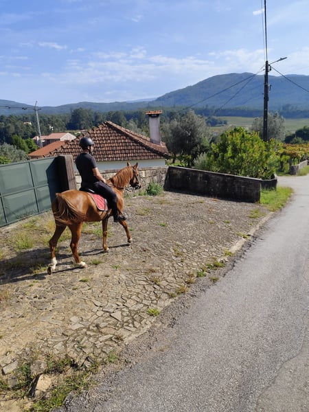Macho de 5 años, de color alazán, aproximadamente 1,50 m de altura en cruz. Caballo muy bien adiestrado, con bonitas andaduras y un excelente equilibrio en las tres gaitas. Ya muestra pasajes elegantes y comienza el piaffe con facilidad y ligereza. Enérgico pero respetuoso, cercano a las personas, ideal para un jinete que busca un caballo sensible y con potencial. En perfecto estado de salud, manipulado con regularidad, papeles en regla y orígenes de calidad.