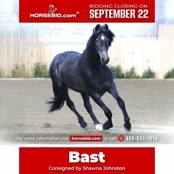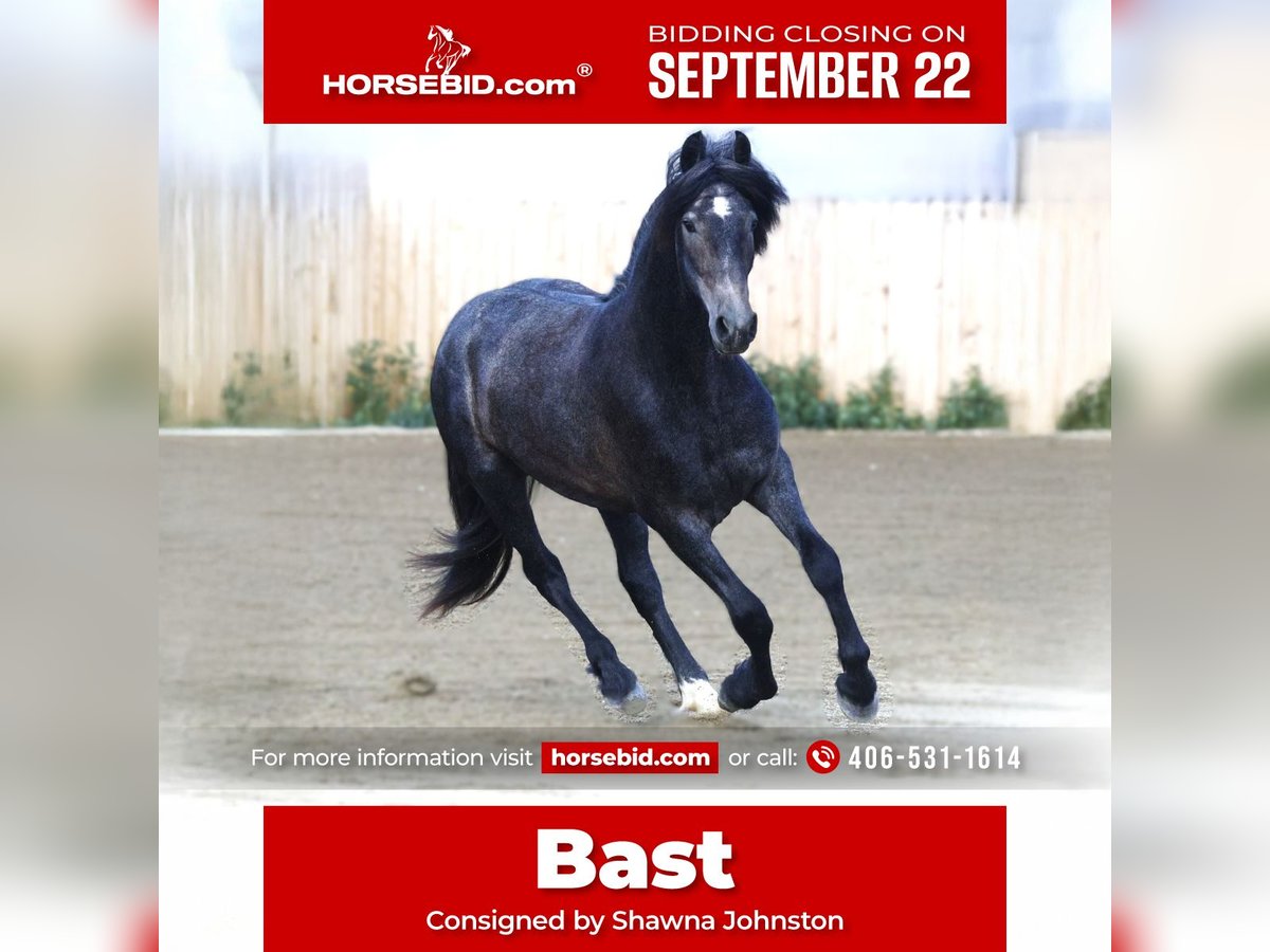 🍁𝒕𝒉𝒆 𝐅𝐀𝐋𝐋 𝑺𝒑𝒆𝒄𝒕𝒂𝒄𝒖𝒍𝒂𝒓🍁 Happening now thru MONDAY | SEPTEMBER 22nd - Available EXCLUSIVELY on HorseBid's website! For more details and to register visit: www.Horsebid.com CONSIGNOR CONTACT: Shawna Johnston 406-531-1614 LOCATION: Stevensville MT BREED: Warlander REGISTERED: Yes REGISTERED NAME: SIR BASTION van DREAM GAIT COLOR: Grey HEIGHT: 15 AGE: 2 GENDER: Gelding 🖤 𝔹𝖔𝖑𝖉 & 𝔹𝖊𝖆𝖚𝖙𝖎𝖋𝖚𝖑 – A young Warlander gelding with endless potential 🖤 – Sir Bastion van Dream Gait – 2023 Friesian Heritage Horse (50% Friesian / 50% Andalusian) | Gelding | 15.0h (expected 15.3h+) | Black turning gray with star & left hind sock – 📍 Located in Stevensville, MT ––– If you’ve been searching for a young prospect with both the royal presence of a baroque Friesian and the mindset of a trusted PRE partner, meet Sir Bastion van Dream Gait. Bred for beauty, brains, and versatility, Bastion is the perfect blend of two legendary breeds: the noble Friesian and the athletic Andalusian. His sire, Daario van Dream Gait (by the renowned Sape 381), brings size, bone, and that unmistakable Friesian elegance. His dam, Muñeca, is an IALHA-registered Andalusian with Spanish lines known for agility, collection, and expressive movement. The result is a young gelding destined to excel in disciplines ranging from classical dressage and working equitation to ranch versatility and pleasure riding. At just 2 year old, Bast already stands a well-proportioned 15.0 hands and is expected to mature around 15.3h to 16h. He’s handled daily and has all the right foundations in place: ✔ Halter broke, leads, loads, ties quietly, and bathes with ease ✔ Calm and curious nature — he thrives on human interaction and seeks attention ✔ Comfortable wearing and packing a saddle on short trail outings already ✔ Great manners on the ground True to his “in-your-pocket” personality, Bast is the kind of horse who greets you at the gate and follows you around just to see what you’re up to. His quiet, people-oriented nature makes him a joy to work with now, and a solid investment for the future. With his striking looks, kind eye, and intelligent mind, Bastion is an exceptional blank canvas ready to be shaped into your dream partner. Whether your vision includes elegant arena work, adventurous trail rides, or a future in competition, this young Warlander has the presence, trainability, and quality to take you there. This is where Unicorns come from!