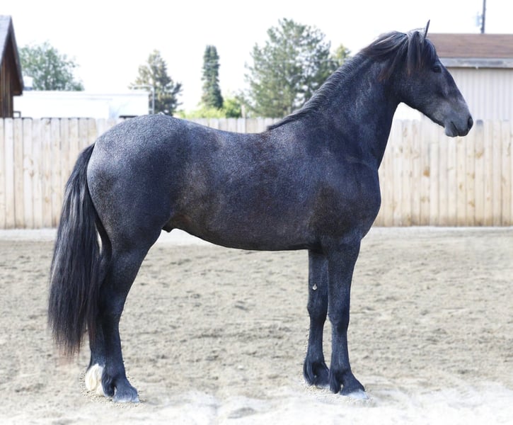 🍁LE SPECTACLE DE L'AUTOMNE🍁 Se déroule actuellement jusqu’au LUNDI 22 SEPTEMBRE – Disponible EXCLUSIVEMENT sur le site d’HorseBid ! Pour plus de détails et pour vous inscrire, rendez-vous sur : www.Horsebid.com CONTACT VENTEUR : Shawna Johnston 406-531-1614 LIEU : Stevensville, Montana RACE : Warlander ENREGISTRÉ : Oui NOM ENREGISTRÉ : SIR BASTION van DREAM GAIT COULEUR : Gris TAILLE : 15 mains ÂGE : 2 ans SEXE : Poulain (gelding) 🖤 UN JEUNE WARLANDER AUDACIEUX ET MAGNIFIQUE, AUX POTENTIELS INFINIS 🖤 – Sir Bastion van Dream Gait – Cheval de patrimoine Friesian 2023 (50 % Friesian / 50 % Andalou) | Poulain | 15,0 hh (attendu 15,3 hh+) | Noir devenant gris avec étoile et chaussette à la patte arrière gauche – 📍 Situé à Stevensville, MT ––– Si vous cherchez un jeune prospect alliant la prestance royale d’un Friesian baroque et l’esprit d’un partenaire PRE fiable, faites la connaissance de Sir Bastion van Dream Gait. Élevé pour la beauté, l’intelligence et la polyvalence, Bastion est le parfait mélange de deux races légendaires : le noble Friesian et l’athlétique Andalou. Son père, Daario van Dream Gait (par le célèbre Sape 381), apporte taille, ossature et cette élégance inégalable des Friesians. Sa mère, Muñeca, est une Andalouse enregistrée à l’IALHA, issue de lignées espagnoles reconnues pour leur agilité, leur collection et leur mouvement expressif. Le résultat est un jeune poulain destiné à exceller dans diverses disciplines, du dressage classique et de l’équitation de travail à la voltige de ranch et au loisir. À seulement 2 ans, Bastion mesure déjà 15 mains bien proportionnées et devrait atteindre environ 15,3 à 16 mains à maturité. Il est manipulé quotidiennement et possède toutes les bases essentielles : ✔ Halter entraîné, mène, charge, s’attache calmement et se lave facilement ✔ Nature calme et curieuse — il adore l’interaction humaine et recherche l’attention ✔ Confortable avec la selle lors de sorties en trail courtes ✔ Bonnes manières au sol Fidèle à sa personnalité “collé à la jambe”, Bastion est le genre de cheval qui vous accueille à la porte et vous suit partout pour voir ce que vous faites. Sa nature tranquille et orientée vers l’humain en fait un plaisir à travailler dès maintenant, tout en étant un investissement solide pour l’avenir. Avec ses traits remarquables, son regard doux et son esprit intelligent, Bastion est une toile vierge exceptionnelle prête à être façonnée selon votre rêve. Que votre vision inclue un travail élégant en dressage, des randonnées aventureuses ou une future carrière en compétition, ce jeune Warlander possède la présence, la capacité d’apprentissage et la qualité pour vous y mener. C’est de là que viennent les licornes !