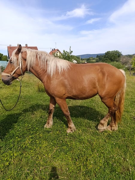 yegua de raza comtois presumiblemente preñada. muy buen carácter.