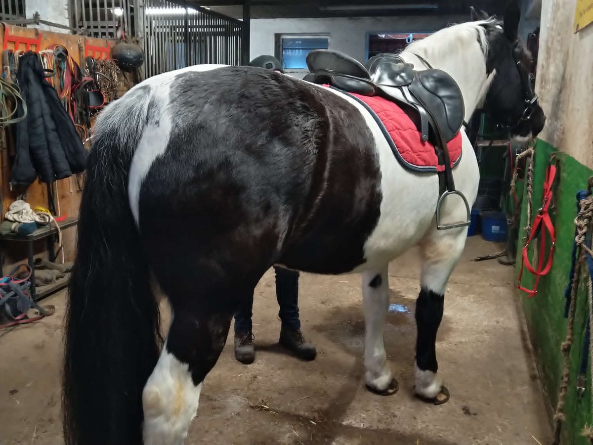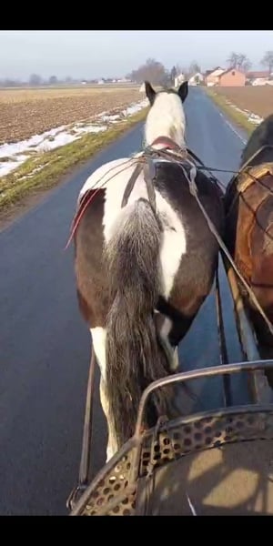 Bellana Kaltblutstute, Rappschecke, 8 Jahre, ca. 1,62 Stm., superschöne Kaltblutstute mit bestem Charakter, brav im Umgang, sehr gut gefahren in Kutsche und Planwagen und freizeitgeritten 5400,00 Euro 0171/3132074