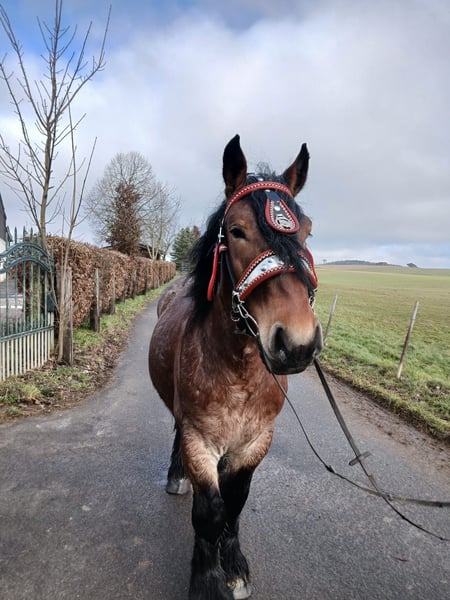 Veuillez adresser vos demandes uniquement par téléphone au : 0175 / 1679777. À vendre : le hongre de trait belge Apollon, né en 2022, avec une taille au garrot d’environ 158 cm. Apollon séduit par son apparence attrayante, son tempérament équilibré et sociable, ainsi que son comportement fiable au quotidien. Apollon est extrêmement calme et doux, un véritable gentil géant. Le prix est de 5 000 €. Apollon peut être visité et essayé sur rendez-vous à 53947 Nettersheim. Pour plus d’informations ou pour fixer un rendez-vous, n’hésitez pas à nous contacter au …. Afin d’éviter le tourisme équestre, une participation de 40,00 € sera demandée pour l’essai. Cette somme sera déduite en cas d’achat.