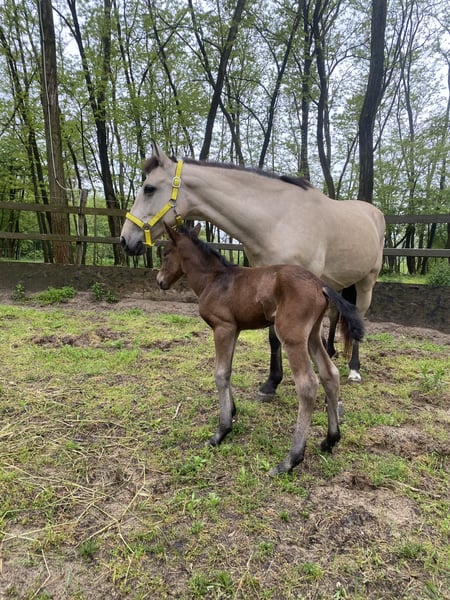 SH Antonio 16.05.2023 Ogier, ale na życzenie może zostać wykastrowany. Toontje urodził się u mnie, więc wszystko jest znane. Z powodu braku czasu niestety muszę podjąć decyzję o znalezieniu dla mojego małego przyjaciela nowego domu. Jest oswojony z staniem w boksie, chodzeniem na lonży, czyszczeniem, zna podstawy pracy z młodym koniem. Również wsiadanie do przyczepy nie jest dla niego nowością – łatwo się ładuje i transportuje! Zaszczepiony i przebadany krwiowo. Ma paszport. Obecnie ma około 135/138 cm w kłębie. Przebywa w stadzie z klaczą i innymi ogierami. Obecnie pełni funkcję opiekuna naszego źrebięcia z kwietnia 2025 roku. Więcej informacji, zdjęć i/lub filmów, ewentualne pytania, proszę o wiadomość prywatną! 😊 Lajosmizse, WĘGRY 🏡