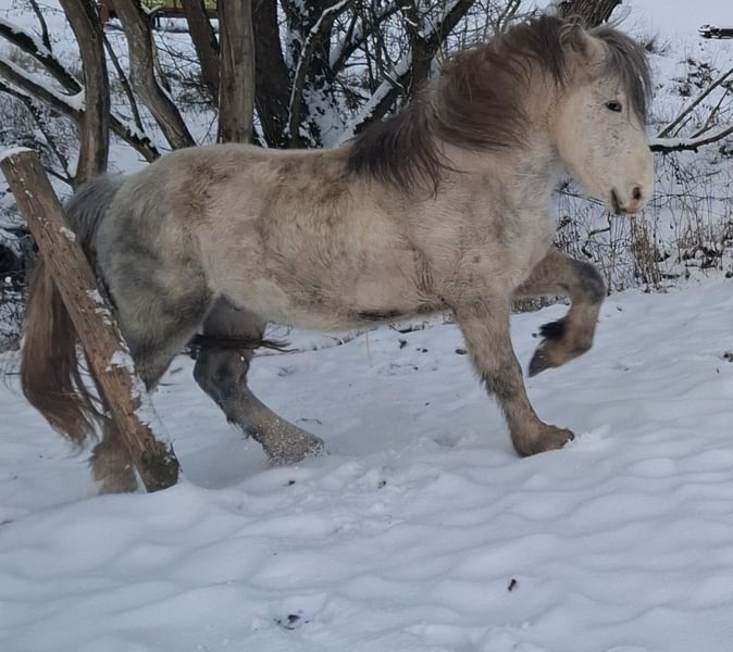 Unfortunately, I am selling my 5-year-old stallion due to lack of time. He is gradually turning into a grey and has a blue eye. He is completely untrained, so he is not suitable for absolute beginners. He is familiar with haltering and enjoys being groomed, but he still needs to get used to having his hooves picked out. He lives with us in an open stable and is a hardy little guy. In terms of character, he is a sweet boy who just still has a lot to learn :) Since he has grown up on large pastures, he of course does not yet know the world. However, he has not experienced anything bad so far – making him perfect for someone who wants to train their own future partner. He can, at the buyer’s expense, also be castrated. Feel free to contact me if you have any questions. The price is absolutely negotiable. However, he is not a giveaway.