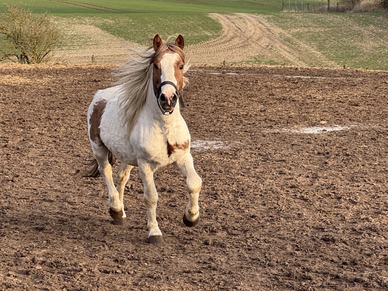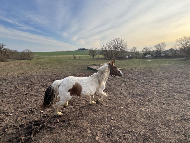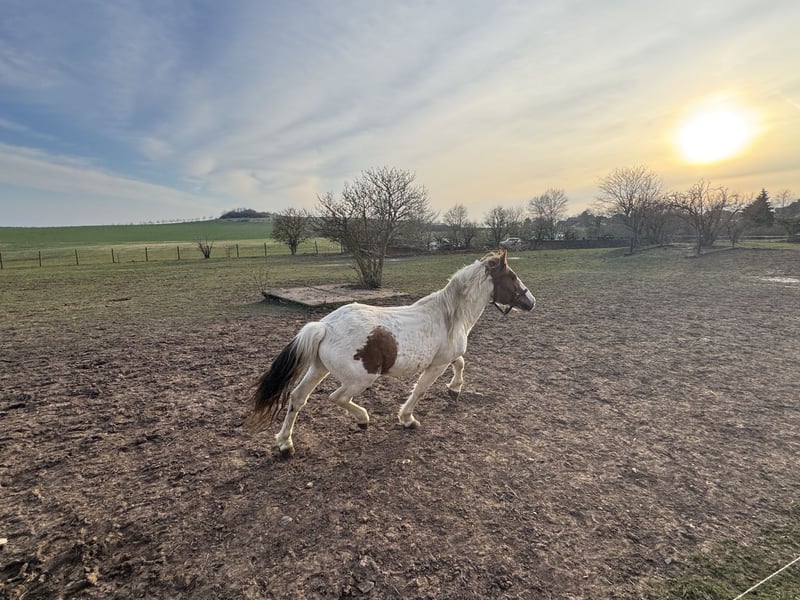 Zum Verkauf steht unser hübscher Ponyhengst Karino, geboren 2017. Karino überzeugt nicht nur durch seine außergewöhnliche Scheckzeichnung und seine schönen Gänge, sondern vor allem durch seinen absolut lieben und unkomplizierten Charakter. Er ist im täglichen Umgang sehr brav: * lässt sich problemlos führen * gibt brav alle Hufe * ist ruhig und gelassen beim Verladen und im Anhänger (auch in Gesellschaft von Stuten) Unter dem Sattel ist er angeritten und zeigt sich lernwillig. Mit weiterer Förderung entwickelt er sich zu einem zuverlässigen Freizeitpartner. Besonders im Freilauf zeigt er seine Qualität – dort „legt er erst richtig los“ und präsentiert sich mit schwungvollen, ansprechenden Bewegungen. Karino eignet sich sowohl: * als zukünftiges Reitpony * als verlässlicher Freizeitpartner * als interessanter Hengst für die Endmaßponyzucht Auf Wunsch senden wir gerne weitere Bilder und Videos, auch von seinen Nachkommen. Bei Interesse freuen wir uns über eine Nachricht oder einen Besuch vor Ort. Der Verkauf erfolgt aus Altersgründen im Rahmen einer Bestandsverkleinerung eines über viele Jahre aufgebauten Pferdebestandes. Es handelt sich ausdrücklich nicht um Notverkäufe.