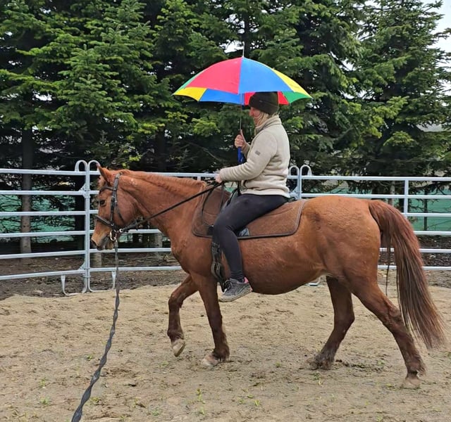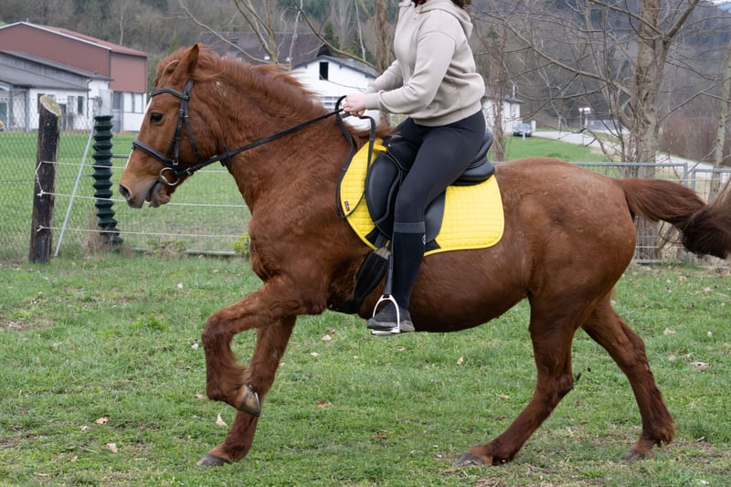 For sale is our sport pony mare Dakota, whom we have owned for the past two years. When we purchased her, she was pregnant – we will keep the foal, so Dakota is now looking for a new home. At her previous owner's place, she was mainly driven, while with us, she has mostly been ridden in the arena and on trails. She is well-behaved, eager, and motivated, even when ridden by young riders. In groundwork, she still requires some consistent training. During leading or lunging, she occasionally tries to pull away. Once she realizes that’s not possible, she quickly becomes obedient again. Health / Care: - Teeth treated - Regularly vaccinated - Regularly dewormed Stabling: - Used to an open stable (mare group) - Low in the hierarchy and very social With a bit more work and trust, Dakota can become a fantastic leisure horse and possibly a school horse. Please feel free to contact us if you're interested.