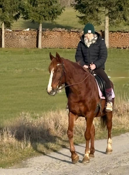 Zum Verkauf steht diese schöne 12,5-jährige Welsh-Cob-Stute mit Abstammung und einem Stockmaß von ca. 152 cm. Sie ist im Umgang sehr brav und zeigt sich auch beim Reiten zuverlässig. Aktuell wird sie wieder schonend antrainiert, da sie aufgrund der Schwangerschaft der Besitzerin eine längere Reitpause hatte. Nach unserer Einschätzung ist sie bei sicherem Beherrschen aller drei Grundgangarten auch gut für Wiedereinsteiger geeignet. Zudem saßen bei uns bereits Anfänger an der Longe auf ihr, wobei sie sich stets ruhig und zuverlässig gezeigt hat. Auch im Umgang ist sie sehr angenehm: Kinder können sie problemlos händeln und putzen. Sie wurde außerdem von einem Pferdechiropraktiker behandelt. Wir wünschen uns für sie ein liebevolles neues Zuhause bei jemandem, der ihr die nötige Zeit gibt, um anzukommen, und der mit ihr ein echtes Team werden möchte. Für das Vorstellen bzw. Probereiten berechnen wir 25 €, die beim Kauf selbstverständlich vollständig erstattet werden.