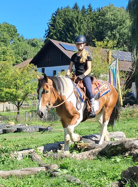 Kora eine Pony zum verlieben! Liebe Stute mit dem Herz am rechten Fleck, freundlich, menschenbezogen, immer bemüht und willig, tolle Optik, leicht zu reiten, sehr sitzbequem, absolut unkompliziert in der Herde, man muss sie einfach kennenlernen, 145 cm, 3 Jahre. Für Wander-, Gelände- und Freizeitreiten. Englisch und Western ist beides möglich. Offenstall und Herdenhaltung gewöhnt, Box ist auch kein Problem. Equidenpass vorhanden. Alle unsere Pferde kennen Bodenarbeit, unterschiedliches Gelände, Autos, landwirtschaftliche Maschinen, sowie Kühe, Esel, Schafe, Schweine, Hunde, Katzen und Hühner. Infos und Terminabsprache unter 08536-2890292 (AB vorhanden) oder 0157-78378455 (am Hof kein Mobilnetz). Bitte keine PN, Mail und WhatsApp Anfragen!! Sonntag Ruhetag. Zubehör und Transport günstig möglich. Jedem Kunden wird ein vertraglich festgesetztes Umtauschrecht von 6 Wochen eingeräumt. Preise sind Festpreise. Keine Anfragen auf Ratenzahlung erwünscht. Wer gleich mit Anhänger kommt und mitnimmt erhält 100€ Rabatt. Bei Kauf werden 1000€ in bar als Anzahlung fällig. Wer das Pferd gleich mitnehmen will, muss selbstverständlich komplett bezahlen. Wir absolvieren mit den Kunden einen Ausritt mit zwei Pferden Eurer Wahl, damit Ihr Euer Traumpferd kennenlernen und prüfen könnt ob es das richtige Pferd für Euch ist. Jeder Termin kostet 35€, egal ob reiten, vorreiten, bereitstellen, spazieren ... jeder weitere Reiter (Freundin, Freund, Schwester, Trainer...) bezahlt das selbe wenn er mitreitet, nur mal schauen kostet uns auch Zeit und somit 20€. Der Betrag wird beim Kauf eines Pferdes am selben Tag wieder erstattet. Aufgrund mehrfacher Vorkommnisse bitten wir darum wahrheitsgemäße Angaben über das Reitergewicht zu machen. Bei nicht wahrheitsgemäßen Angaben behalten wir uns vor, uns vor Ort gegen einen Proberitt zu entscheiden. Unseren Pferden zu Liebe möchten wir auch unseren gut gebauten Pferden nicht mehr als 120kg zumuten. Da es sich hierbei um ein lebendes Tier handelt, sind dies lediglich Eindrücke des Betreuers und keine zugesicherten Eigenschaften des Pferdes. Weitere Pferde/Ponys in meinen anderen Anzeigen oder auf Anfrage.
