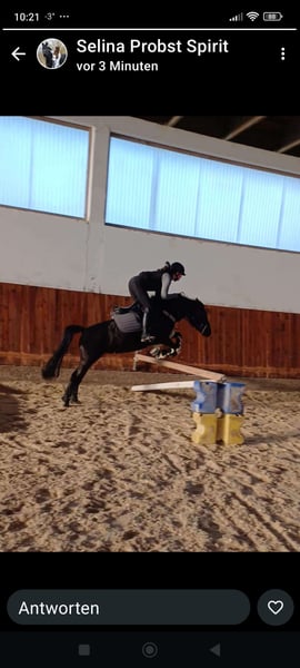 Zum Verkauf steht eine super schicke Rapp -Ponystute. Momentan 1.40 m groß. Deckt sehr gut ab. (Reiterin ist 1.68). Hat E Dressur gewonnen mit 7.8 weitere Platzierungen. A vorgestellt. Ist weiter in der Ausbildung. Im Springen letztes Jahr bis 75 cm vorgestellt. Hier ist sie jetzt schon bei 90 cm. Auch im Gelände super. Kann auch von kleinen Kindern geritten werden. Kaufen und losreiten. Bei weiterer Ausbildung und Platzierungen steigt der Preis entsprechend sie geht problemlos in den Hänger, auch beim Tierarzt immer brav. Ist Vorne beschlagen. Regelmäßig geimpft und entwurmt. . Für weitere Fragen und Videos einfach melden.