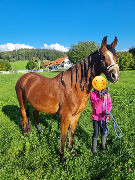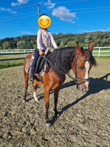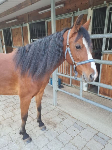 Hübsche, temperamentvolle Ponystute sucht liebevolles Zuhause. Welsh (Mix), 7 Jahre alt und ca. 1,45 m groß Geritten in allen 3 Gangarten Sie ist aufgrund ihres feinen Körperbaus kein Gewichtsträger. Also ideal für leichte Erwachsene, Kinder oder Jugendliche. Sie ist im Umgang und beim reiten sehr sensibel aber immer gut zu handeln. Zeigte bei uns noch nie Unarten wie steigen, bocken, treten, beißen... Braucht ihre feste Bezugspersonen und ist daher nicht für Reitschulen geeignet. Im Gelände war sie schon länger nicht mehr da sie, aus Zeitgründen, länger nicht gearbeitet wurde. Wird momentan wieder angeschoben. Auf dem Platz arbeitet sie immer ganz toll mit. Sie kennt Offenstallhaltung steht aber derzeit in einer Paddockbox. Hatte auch schon ein Fohlen. Regelmäßig entwurmt und dem Hufschmid vorgestellt. Impfschutz müsste erneuert/aufgefrischt werden. Kommt bei uns als Zweitpferd etwas zu kurz da sie definitiv mehr Aufmerksamkeit verdient hat. Sie kann jederzeit kennengelernt werden. Standort Nähe Memmingen. Bei Interesse gerne einen kleinen Vorstellungstext schicken :-)