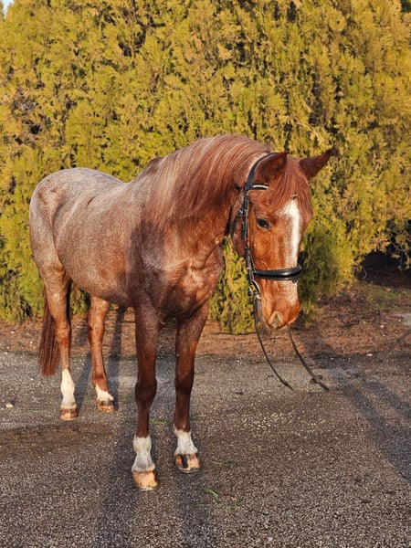 💖 Casablanca 💖 💖 Mare 💖 14.1 hh 💖 8 years old A true dream pony for children and adults alike – suitable for both beginners and advanced riders! For sale is a real gem: an 8-year-old, beautiful Roan Red-colored mare. She impresses not only with her appearance but also with her performance. Height: 14.1 hh – perfect for children or adults. 🐎 Characteristics: • Easy to ride, very well-behaved and friendly • Absolutely trail-safe • Calm and steady, not spooky – a reliable partner in any situation • Handles all four hooves easily, even with the farrier – very uncomplicated • Healthy, with full papers • No injuries or health issues 💬 +49 176 4017 7894