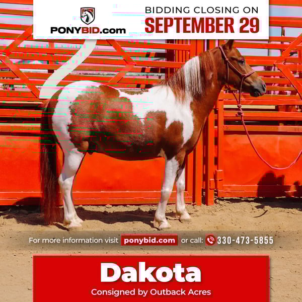 🐴 𝒕𝒉𝒆 𝐅𝐀𝐋𝐋 ℙ𝕆ℕ𝕐 𝑺𝒑𝒆𝒄𝒕𝒂𝒄𝒖𝒍𝒂𝒓🐴 Happening now thru MONDAY | SEPTEMBER 29th - Available EXCLUSIVELY on Ponybid's website! For more details and to register visit: www.Ponybid.com CONSIGNOR CONTACT: Outback Acres 330-473-5855 LOCATION: Dundee, OH BREED: Pony REGISTERED: No COLOR: Brown and White Paint HEIGHT: 40" AGE: 9 GENDER: Gelding Meet Dakota💥 If you’ve been looking for the perfect little partner for the kids, this 40" brown and white pony gelding checks all the boxes! He is kid-broke to both ride and drive and has plenty of real-world experience under his belt. He’s traffic safe and has been driven out on the big roads. Whether you’re looking for a driving pony for the grandkids, a lead line pony for the littles or one that can ride out on his own, he’s ready to do it all. This sweet gelding has been all over the trails, crossing creeks, logs, and anything else in his path without hesitation. He’ll carry the flag proudly and has the patience to stand quietly for bathing, grooming, and tacking up. He picks up his feet with ease and is always the first to greet you in the pasture—he truly loves people and attention. This little guy has the kind of disposition everyone looks for in a kids’ pony—gentle, willing, and dependable. He has been around all types of animals. (Dogs, Cattle, & Horses) Whether you want a pony to hitch up and drive down the road, lead the kids around on, or let them ride solo, he’s a versatile, trustworthy option that the whole family will enjoy. 📍 Don’t miss the chance to own this one-of-a-kind pony!