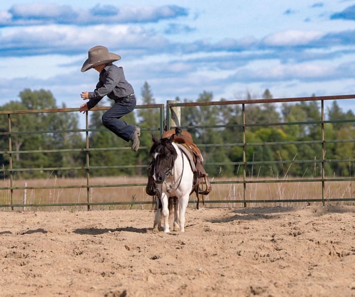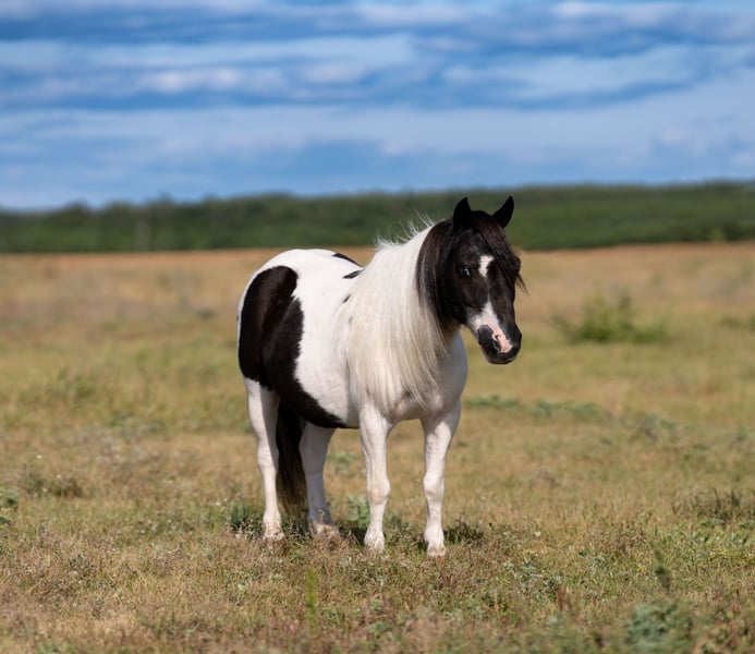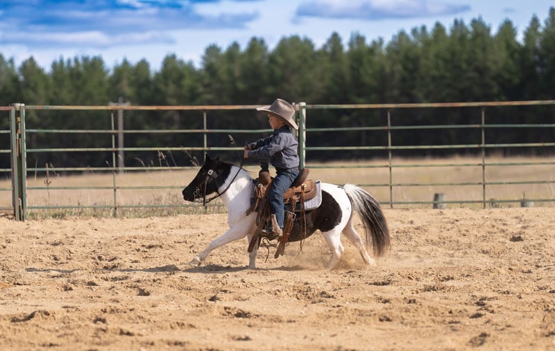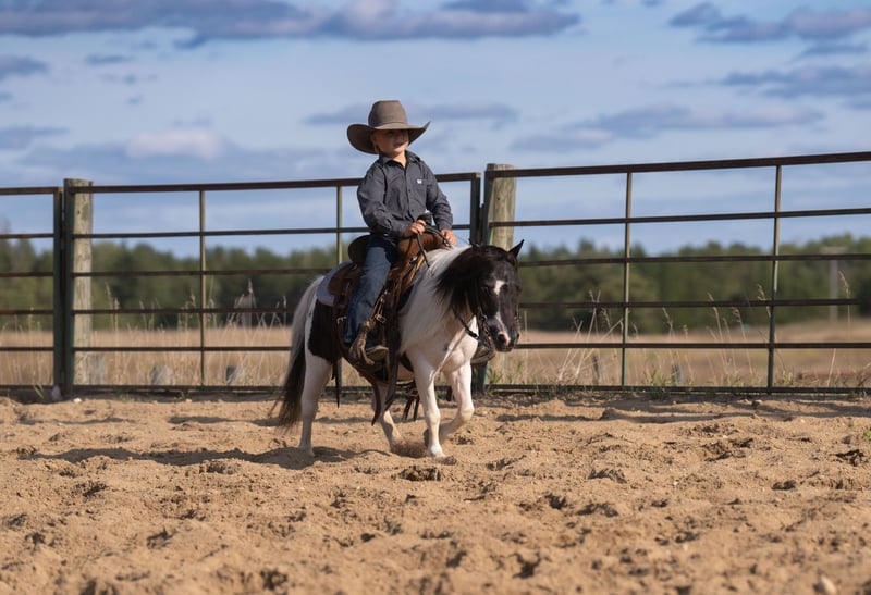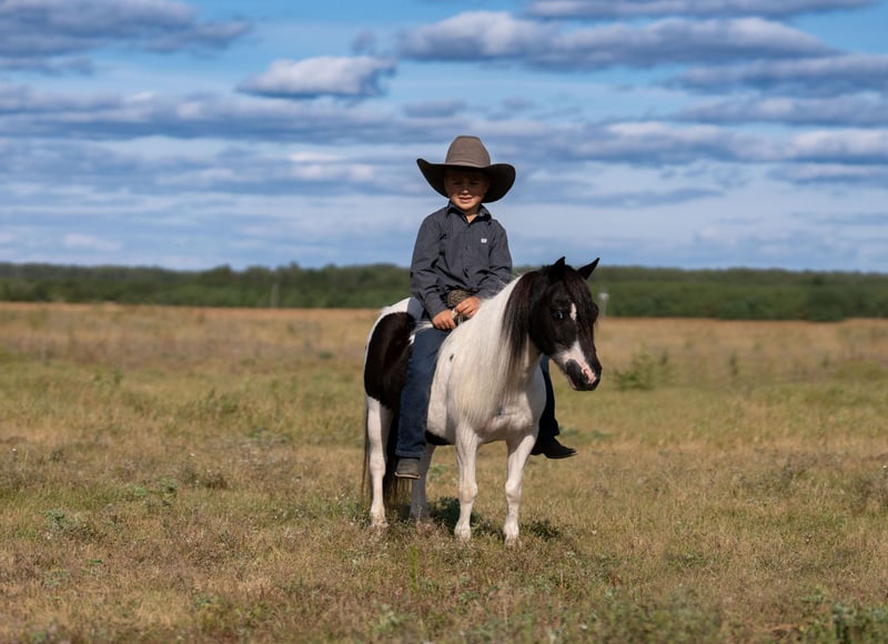 🐴 𝒕𝒉𝒆 𝐅𝐀𝐋𝐋 ℙ𝕆ℕ𝕐 𝑺𝒑𝒆𝒄𝒕𝒂𝒄𝒖𝒍𝒂𝒓🐴 Happening now thru MONDAY | SEPTEMBER 29th - Available EXCLUSIVELY on Ponybid's website! For more details and to register visit: www.Ponybid.com CONSIGNOR CONTACT: Paris Thorson 218-770-3626 LOCATION: Nevis, MN BREED: Pony REGISTERED: No COLOR: Black and White Paint HEIGHT: 36 " AGE: 10 GENDER: Gelding Looking for that once-in-a-lifetime pony that’s as versatile as he is adorable? Look no further than Boots – 36 inches of absolute cuteness, personality, and grit! This little gelding is packed full of heart, and he’s always up for an adventure. Whether it’s heading down the trail, exploring town from the cart, or working cattle on the ranch, Boots is ready to go and eager to please. With his can-do attitude, he’s the kind of pony every cowboy or cowgirl dreams of growing up with. Boots has been exposed to just about everything you can imagine – and takes it all in stride. He’s been on countless trail rides, confidently going over logs, through brush, splashing in creeks, and strolling down busy streets. Don’t let his size fool you – Boots is a true ranch hand. From gathering cows in wide open pastures to helping bring steers up to the roping boxes, this little guy knows his job and does it well. He’s sure-footed, responsive, and smart – the kind of pony that earns his keep and makes it look easy. He’s been a trusted partner in all kinds of ranch work, helping his young rider learn and grow in confidence every step of the way. Boots is the best step up pony for the little rider looking to have a day filled with fun. Boots also shines in the cart, making him a blast for the whole family. Whether you're headed to town, a parade, or just out for a Sunday drive, Boots drives like a dream and absolutely soaks up the attention. He loves having a job – and that job might just be putting a smile on everyone's face! He’s the kind of pony that brings people together, with his fun personality and willingness to go anywhere you ask. If you're looking for a pony that checks all the boxes, cute as can be, and fun for the whole family, then Boots is your guy. Whether he’s ponying across a pasture, pulling the cart to town, or being the star of your next family photo, he’s the kind that every family wants in their pasture. Don’t miss your chance to own a pony that truly does it all – and looks adorable doing it!