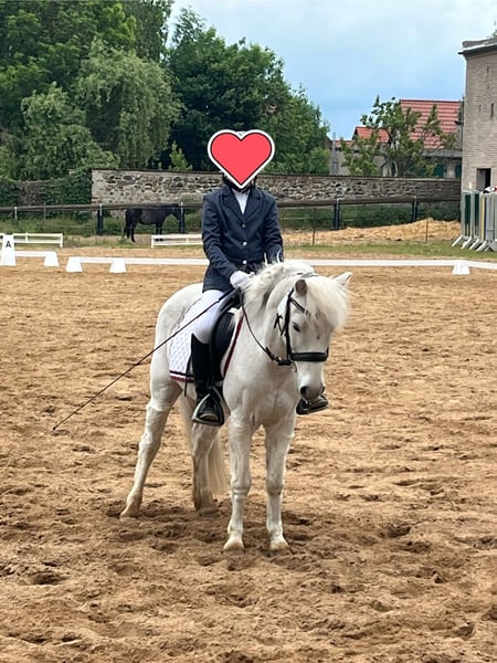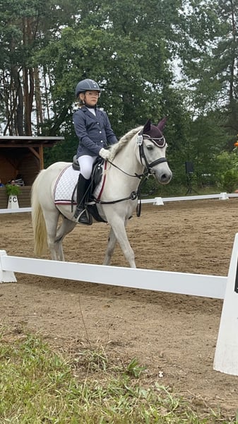 Hier kommt PAUL! Wir suchen auf diesem Wege für unseren verschmitzten 13- jährigen Pauli eine neue Aufgabe. Bei uns hat er unsere beiden Töchter den Umgang mit Pferden und den Einstieg in den (Turnier-)Reitsport ermöglicht. Mit seinen 1,22 m ist er nicht der Größte, macht das aber manchmal durch sein Ego wett. Meiner Meinung ist er kein Pony, welches nur durch Kinder zu Händeln ist, bei kleineren Kindern ist definitiv ein Erwachsener notwendig. Unsere Töchter mit nun 9 und 11 Jahren können ihn selbständig vom Paddock holen, putzen, satteln und reiten. Paul ist straßensicher, kennt Hunde, Reithalle, Platz und Gelände, Anhänger fahren, landwirtschaftliche Maschinen und viele spielende Kinder um sich herum. Er lässt sich gerne betüddeln und ist auch immer für Quatsch zu haben. So richtig lebt Paul beim Springen und im Gelände auf. Unsere Töchter sind mit ihm Führzügel-WB, Schritt-Trab-Galopp Reiterwettbewerbe und Springreiterwettbewerbe geritten. Er ist mit einer Reitbeteiligung auch schon Mini-E-Springen gegangen. Er konnte sogar schon einen Gelände- Orientierungsritt gewinnen. Paul steht bei uns in einer gemischten Herde 24/7 draußen mit begrenztem Zugang zur Weide. Wir würden uns diese Haltung auch weiterhin für ihn wünschen. Wir wünschen uns gern ein Eltern-Kind-Gespann für ihn. Bei Bedarf kann er auch mit Zubehör verkauft werden (Sattel, Trense, Gamaschen, diverse Decken). Der Preis ist im Rahmen verhandelbar.