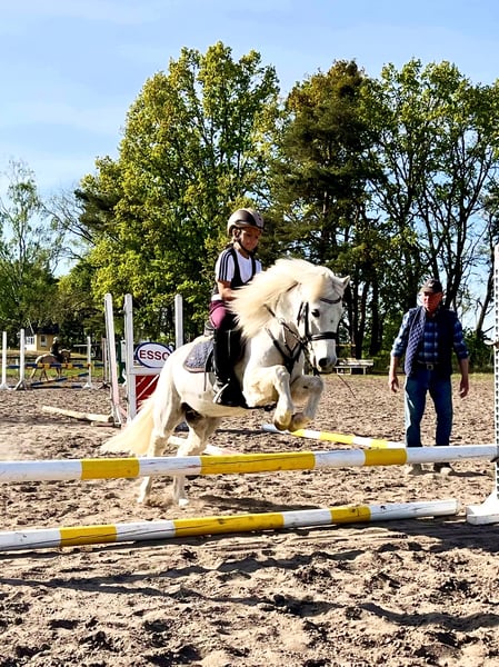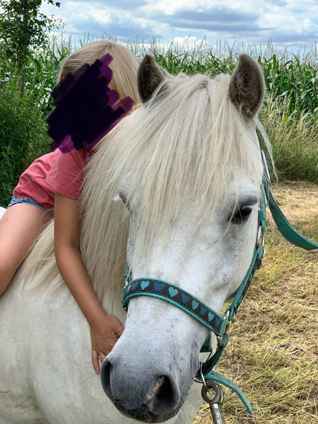 Here comes PAUL! We are seeking a new home for our mischievous 13-year-old Pauli. He has introduced our two daughters to horse handling and the basics of (competition) riding. At 1.22 meters, he’s not the tallest, but he sometimes makes up for it with his ego. In my opinion, he is not a pony that can be handled solely by children; older, experienced riders are definitely needed for smaller children. Our daughters, now 9 and 11 years old, are able to groom, saddle, and ride him independently, from the paddock. Paul is traffic-safe, familiar with dogs, indoor riding arenas, outdoor riding areas, and open terrain. He is comfortable with trailer loading, agricultural machinery, and many playing children around him. He enjoys being pampered and is always up for a bit of mischief. He truly comes alive when jumping and riding in the terrain. Our daughters have competed with him in lead-rein walk-trot and walk-trot-canter riding competitions, as well as in show jumping. With a riding partner, he has even participated in mini E-jumping events. He has also won a cross-country orientation ride. Paul is kept in a mixed herd outdoors 24/7, with limited access to pasture. We would like to continue this type of turnout for him. We are ideally looking for a parent-child team to give him a loving new home. If needed, he can be sold with accessories (saddle, bridle, boots, various rugs). The price is negotiable within reasonable limits.