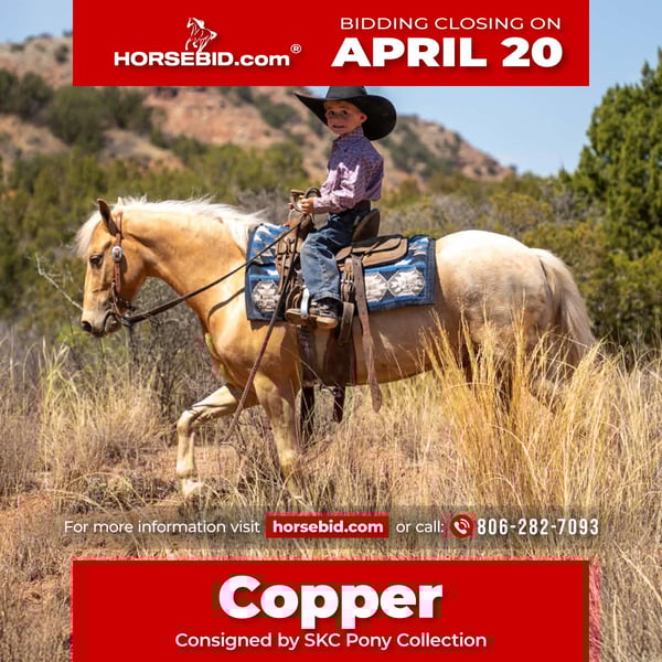 ⚜️𝐭𝐡𝐞 𝓔𝓵𝓲𝓽𝓮 𝐒𝐩𝐫𝐢𝐧𝐠 𝐂𝐥𝐚𝐬𝐬𝐢𝐜⚜️ Happening now thru MONDAY | APRIL 20th - Available EXCLUSIVELY on HorseBid's website! For more details and to register visit: www.Horsebid.com CONSIGNOR CONTACT: SKC Pony Collection 806-282-7093 LOCATION: Canyon, TX BREED: Pony REGISTERED: No COLOR: Palomino HEIGHT: 12.1 AGE: 5 GENDER: Gelding