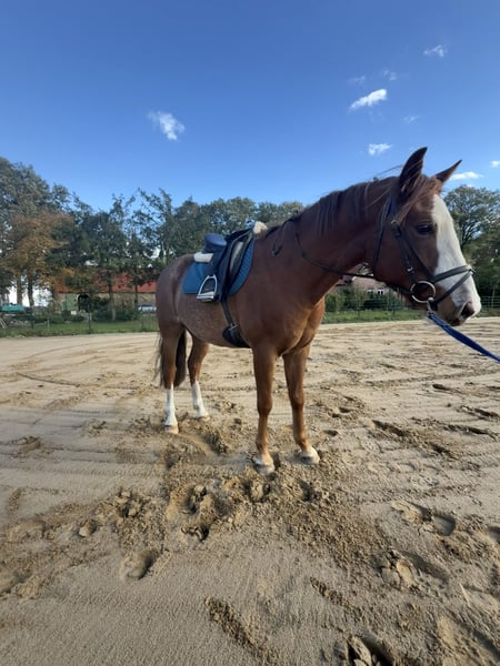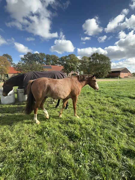 5 jähriger Wallach zu verkaufen. Wir haben uns nach langem Überlegen dazu entschieden, wenn alles passt, unser Pony abzugeben. Leider passt es bei uns nicht richtig bzw. aufgrund der Größe fehlt der passende Reiter. Carlo (eingetragen als Drago) lebt bei uns in einer gemischten Herde mit Stuten und Wallachen und ist absolut verträglich! Er kennt es, die schönen Monate 24/7 über draußen zu sein. Im Winter nachts in der Box. Carlo ist kein Anfänger- oder Kinderpony! Er kennt es aber, wenn Kinder ihn betüddeln und putzen. ☺️ Er kennt die Arbeit auf dem Platz und auch das Gelände in der Gruppe. Das macht er super mit, wenn er einen sichereren Reiter bei sich hat!! Er ist sehr menschenbezogen und freut sich über eine feste Bezugsperson! Er lernt sehr schnell und wäre mit der entsprechenden Zeit und Muße auch bestimmt ein super Verlasspony! Aktuell aufgrund fehlendem Reiter nicht im Training. Er ist alle 6-8 Wochen beim Schmied und regelmäßig entwurmt! Carlo würden wir mit Zubehör abgeben. (Euroriding Dressursattel, Trense, 2 Halfter, Fliegenmaske, Putztasche samt Inhalt…..) Platz vor Preis!!! Bei weiteren Fragen gerne melden.