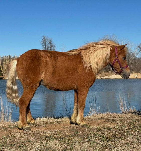 ⚜️𝓽𝓱𝓮 𝐆𝐎𝐋𝐃 𝓢𝓮𝓵𝓮𝓬𝓽⚜️ Happening now thru MONDAY | MARCH 23rd - Available EXCLUSIVELY on HorseBid's website! For more details and to register visit: www.Horsebid.com CONSIGNOR CONTACT: SKC Pony Collection 785-531-2353 LOCATION: Canyon, TX BREED: Pony REGISTERED: No COLOR: Sorrel HEIGHT: 38 inches AGE: 5 GENDER: Gelding Everyone meet Shorty! Shorty is a 5-year-old sorrel gelding pony standing a perfect 38 inches tall, and he is the kind of little pony that every family hopes to find. He has been a big part of our daily routine and has proven himself time and time again to be safe, dependable, and gentle for the kids. Shorty has been hauled all around the countryside helping dad check cows, and lately he has taken on the very important job of taking care of the little ones. He has been our 5-year-old son Townes’ main mount, helping him learn the ropes—literally. Shorty has spent plenty of time teaching Townes how to rope the calf sled, standing patiently and handling the commotion like a seasoned ranch pony should. This little gelding has been rode extensively through rough, rocky terrain and up and down trails, always staying sure-footed, steady, and safe. Whether you’re riding through the pasture, checking cattle in the evenings, or just enjoying a quiet trail ride, Shorty stays calm and confident wherever you point him. Around the house and in the barn, Shorty is an absolute gentleman on the ground. He happily stands while the kids brush him, saddle him, and even bathe him, making him the perfect pony for young riders to learn responsibility and confidence with. He is easy to mount and dismount, which makes getting on and off simple and safe for the little ones. Under saddle, Shorty rides around with a nice direct rein and a good, safe stop. He has also been around the barrels a few times and is showing all the signs of becoming a fun little playday pony for a young rider wanting to try their hand at events. Shorty is also traffic safe, will cross tarps without hesitation, and takes new situations in stride. On the ranch he has helped us check heifers in the evenings, and he enjoys pushing our roping steers around the house, proving he’s not just a kid’s pony—he’s a useful little ranch partner too. One thing we really appreciate about Shorty is his independence; he is confident going out on his own and does not need another horse to get a job done. Shorty is 100% sound, healthy, and ready to continue being someone’s best friend and first pony. If you’re looking for a safe, gentle, well-rounded pony that has been there and done that with kids, Shorty is the kind that is hard to find and even harder to replace. Shorty is the real deal and ready to take care of the next set of little cowboys and cowgirls. Sells sound, sane and gentle !! Located in Canyon Tx Shipping can be arranged anywhere in the U.S! Call or text 785-531-2353!