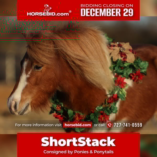 ⚜️𝐓𝐇𝐄 𝓗𝓮𝓻𝓲𝓽𝓪𝓰𝓮 𝐖𝐢𝐧𝐭𝐞𝐫 𝓒𝓵𝓪𝓼𝓼𝓲𝓬⚜️ Happening now thru MONDAY | DECEMBER 29th - Available EXCLUSIVELY on HorseBid's website! For more details and to register visit: www.Horsebid.com CONSIGNOR CONTACT: Ponies & Ponytails 727-741-0559 LOCATION: Cleburne, TX BREED: Pony REGISTERED: No REGISTERED NAME: ShortStack COLOR: Sorrel & white HEIGHT: 10 AGE: 5 GENDER: Gelding If you need the perfect pony to raise the kiddos with.. don’t miss ShortStack! This 5yr old 40in sorrel and white pony gelding is as close to saintly as a pony can be! DISPOSITION: This little man absolutely loves people and getting attention. He will come right to the gate to greet you with cute little nickers! He’s a very “old soul” type of pony that is truly a safe and gentle pony for the kiddos to learn on and crawl all over! RIDING EXPERIENCE: ShortStack will ride under English or western tack or just hop on bareback. He’s perfect from the leadline up to riding out alone! He’s got the cutest little trot and an adorable little lope! He stops and backs up easily for the kiddos! When riding in a group he will ride anywhere you want! He doesn’t get upset about being left behind and will do a quiet little jog to catch up when asked. He’s not spooky or silly acting what so ever! Just watch the video! From Christmas parades to crazy decorations.. nothing bothers this amazing little man! UPKEEP: ShortStack is a super easy keeper. Staying a healthy weight on just alfalfa hay. He’s got great healthy barefeet as well with no maintenance or extra supplements to keep him sound. TURNOUT: ShortStack is great out alone or in a group. He can go out with other ponies or big horses. GROUND MANNERS: ShortStack has great ground manners. The little ones can easily lead him around without feeling crowded. He’s safe and gentle for the little kiddos to do all the things with a pony should do! BAD HABITS/ VICES: ShortStack has no bad habits or vices. No buck, rear, bolt, bite or kick. TACK: ShortStack rides bareback, English or western. You can ride him in a snaffle or even a halter and lead rope. Feel free to reach out with any additional questions at 727-741-0559 For references feel free to visit my personal sale group “Horses Amber Gourdon”