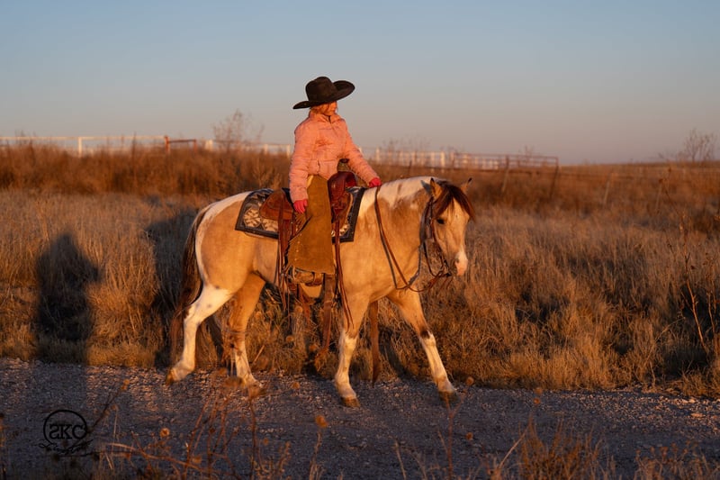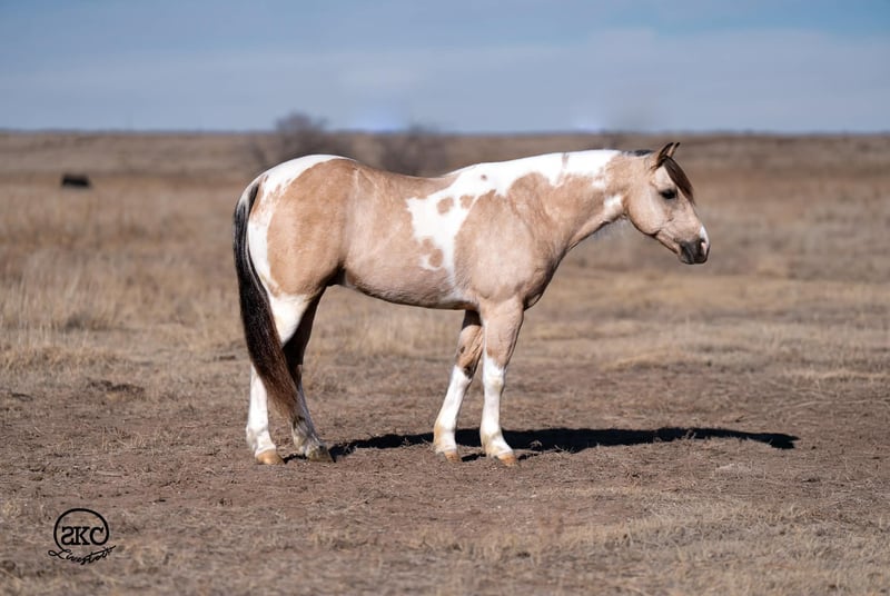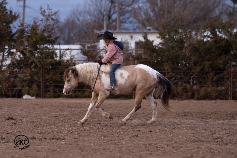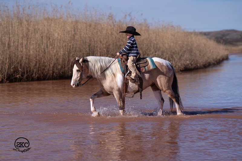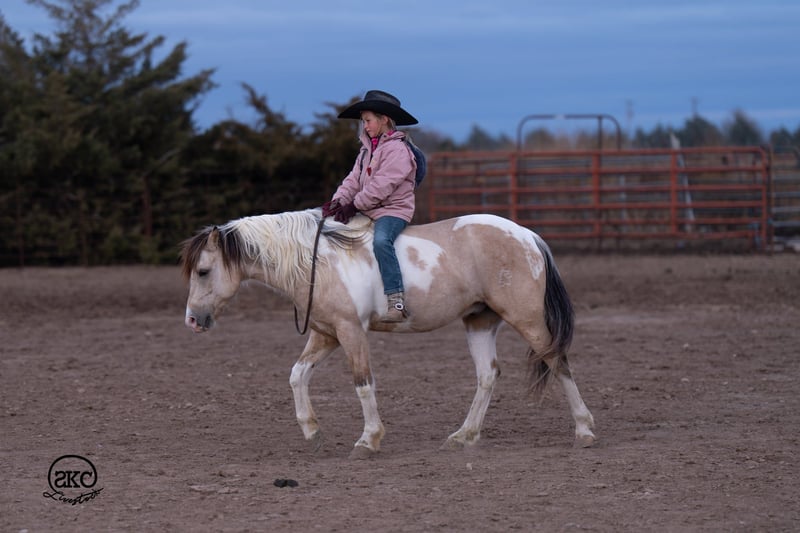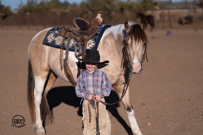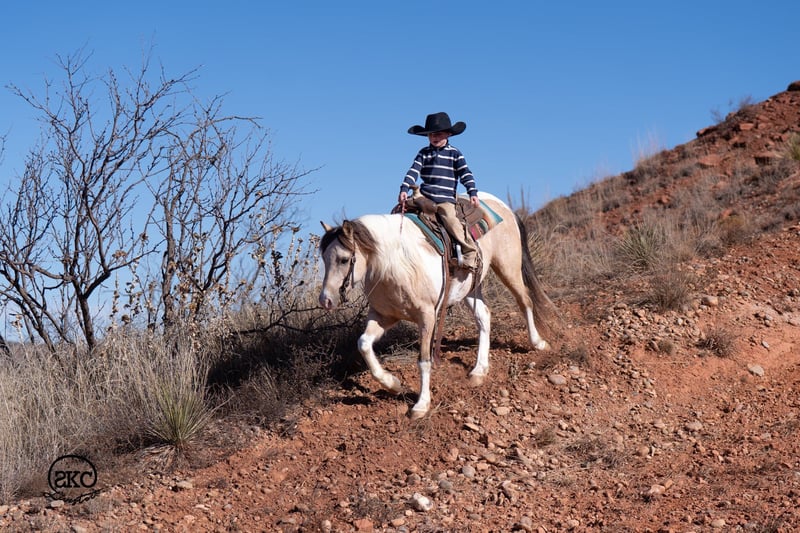 🎄𝐓𝐇𝐄 𝑯𝒐𝒍𝒊𝒅𝒂𝒚 𝐂𝐋𝐀𝐒𝐒𝐈𝐂🎄 Happening now thru MONDAY | DECEMBER 15th - Available EXCLUSIVELY on HorseBid's website! For more details and to register visit: www.Horsebid.com CONSIGNOR CONTACT: SKC Pony Collection 806-282-7093 or 785-531-2353 LOCATION: Canyon TX BREED: Pony REGISTERED: No COLOR: Buckskin and white tobiano HEIGHT: 12.3 AGE: 5 GENDER: Gelding If you could design the perfect pony from scratch, he would look and act exactly like Theodore. Standing a precious 12.3 hands tall, this buckskin-and-white gelding is truly one of the cutest, kindest, and most trustworthy ponies on planet earth. Theo lives up to his name in every way—soft, gentle, polite, and carrying a quiet old-soul spirit that instantly settles both children and parents. Beautifully and exquisitely trained, Theodore moves like a little show horse—floaty, balanced, and responsive—yet he stays simple, steady, and confidence-building for even the youngest or greenest riders. He’s the rare pony who makes parents feel at ease and kids feel unstoppable. His personality? If you could hand-pick every perfect trait and mold it into one pony… you’d get Theo. One of Theodore’s most adored features is that he’s trained to curbside mount. Even the smallest kids feel independent when they can cluck to him and he quietly side-passes over to the mounting block, the fence, or whatever rock they’ve found out on the trail. He wants to help them succeed—every single time. He is as versatile as he is trustworthy. Theo crosses water, rocky terrain, and anything else he encounters with calm confidence. He’s proven safe with unexpected wildlife and just as steady with the chaos of everyday ranch life—dirt bikes, skid loaders, trains, busy roads, barking dogs, you name it. He’ll ride off alone just as happily as he will with a group—nothing changes his easygoing demeanor. He’s even accustomed to gunfire and pays no mind to it. Around home, he’s a valued partner. Our kids hop off the school bus, slide on his back bareback, loop nothing more than a little string around his neck, and guide him absolutely anywhere they want to go. He’s happy to stroll the pastures, check cows, explore new terrain, or simply stand tied like the world’s cutest yard ornament. He’s also proven he can do just about anything the kids dream up. Our 8-year-old has taught him to go English, and he looks absolutely adorable loping around in an English saddle, stepping through trot poles, and even popping over little jumps with perfect rhythm and a big-hearted willingness. Theo is easy to catch, endlessly patient, and carries impeccable manners that set him apart. He’s a joy to handle, a blast to ride, and the kind of pony who is always ready for the next adventure—no warm-up, no drama, no fuss. Whether your family needs a starter pony for tiny beginners or a fancy, safe, competitive partner for a kid ready to step into the show ring, Theodore is absolutely that pony. He meets every child where they are and helps them shine. Ponies like Theodore aren’t made—they’re heaven-sent. A once-in-a-lifetime partner wrapped in an adorable buckskin and white package. Please call Cheyenne or Saylor with any questions. 806-282-7093