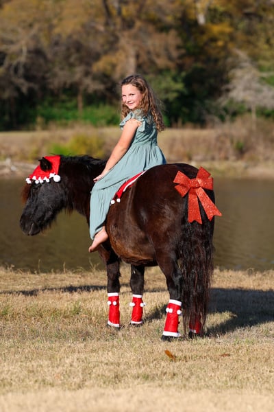 🎁 𝐈𝐍 𝐓𝐈𝐌𝐄 𝐅𝐎𝐑 𝑪𝒉𝒓𝒊𝒔𝒕𝒎𝒂𝒔 🎁 Happening now thru TUESDAY | DECEMBER 9th - Available EXCLUSIVELY on Ponybid's website! For more details and to register visit: www.Ponybid.com CONSIGNOR CONTACT: MM Ranch 469-595-6289 LOCATION: Forney Tx BREED: Pony REGISTERED: No REGISTERED NAME: Elvis COLOR: Black HEIGHT: 11 AGE: 7 GENDER: Gelding 🖤🎅🏼Elvis 🎅🏼🖤is every kids dream pony! He is fun, safe and always ready for an adventure. He is stout and well built and is the perfect size, 11 hands tall, to last kids for years. At just 7 years old, he acts a seasoned old grandpa with anything you ask him to do. He has all the ground manners you expect and want in a kid’s pony… he stands tied, easy to load, picks up all 4 feet, stands to be saddled and mounted, stands for baths, easily takes the bit, etc. He will walk, trot, and lope with ease and is very pretty mover. Elvis neck reins perfect, backs with ease, has the smooth trot, has a rocking chair lope, rides alone great or in a group and rides bareback. He is not spooky and doesn’t have bad habits. He rides english or western. Elvis has done everything from playdays, to english jumping, to being used on the ranch to work cattle, used in riding lessons, ridden in parades, rode on big trail rides, carried flags, and much more to list. He has been rode many many miles up and down the road by traffic 🚗, other animals, and lots of noise. He will go through water and handles different terrain with ease. He is a great well behaved pony no matter what he is doing in or out of the arena. He is athletic and versatile. 💥He really has the capability to do anything kids want to do. He has a good temperament and personality and is willing to try anything that is asked of him. He loves kids and is patient as they are learning. He is soft in the mouth and easy for kids of any age to maneuver and get to go the direction they want. He is enjoyable for tiny kids and super fun for the older kids to jump on and go. He would look perfect with a big red bow waiting by the tree for a kid to wake to on Christmas! 🎄🎁Call with any questions. We can help arrange shipping if needed.
