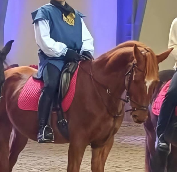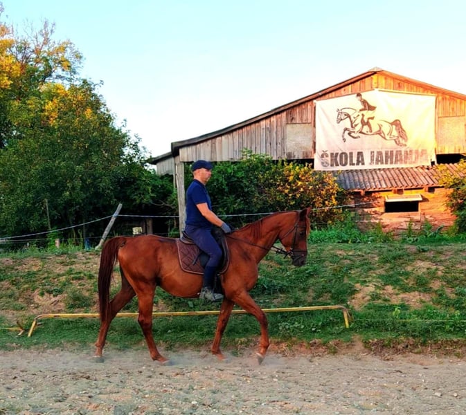 For sale is offered a gorgeous 9-years old Gidran gelding “Glandore”. Glandore was part of our breeding program and even as a stallion, he has shown his calm demeanor and willingness to work. He has actively participated in different horse shows with multiple other horses, dancers, loud music and big crowds, one of them being the traditional “Ball of the Lipizzans” in Dzakovo, as well as Croatian Hussar parades which pass through different parts of the city, showing no fear or concerns about the traffic, carriages or other horses. He knows both arena work and trail riding, and has shown as an absolutely reliable and safe partner in all situations. Due to his show experiences, we see Glandore further excelling in dressage however, he would be just as happy being a leisure partner for a hobby rider or even a family horse. Currently, Glandore lives in a mixed herd but he is just as used to being in a stable. Loading a trailer was never an issue for him either nor waiting while being tied to it when needed. He is healthy and had no past injuries, regularly vaccinated and dewormed and even had additional checks made for shows. Overall, a very simple gelding, someone to have around and just enjoy your time riding. To prevent inbreeding he was gelded a year ago, and as we are focusing on our mares and new generations, we have decided to sell him. If you are interested to meet Glandore or hear more about him (as well as some pictures/videos) please reach out to +385 91 586 2240 on WhatsApp. You are also welcomed to try riding him for a small price of 20€ in order to avoid riding-tourists, which will be deducted from the price should you decide to buy him.