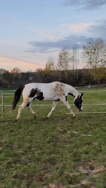 Na sprzedaż klacz Wielkopolska 5,5 roku. Klacz chodzi w trzech chodach i skacze pojedyncze przeszkody , do dalszej nauki, ma potencjał, nada sie na L/P w skokach przy odpowiednim treningu, z racji braku dobrego podłoża i hali skoki sporadycznie. U mnie głównie chodzi w tereny. Elektryczna lecz pod kontrolą, nie ponosi, w terenie idzie jako czołowa i w zastępie odnajduje się w obu formach . Nie nada się dla małego dziecka ani początkujących, na placu bardziej wymagająca, nada się do rekreacji pod osoby jedzące w trzech chodach. Jak to klacz miewa lepsze i gorsze dni ale jest łagodną dziewczyną , w stadzie na końcu hierarchii, u nas lepiej dogaduje się z wałachami bo klacze mamy zbyt dominujące. Dała dwa źrebaki , wzorowa mama, bezproblemowy poród. Cena 28 000 zł do negocjacji.