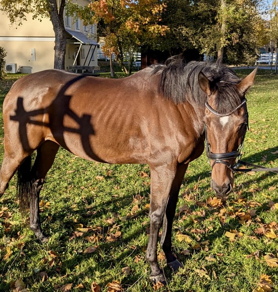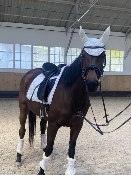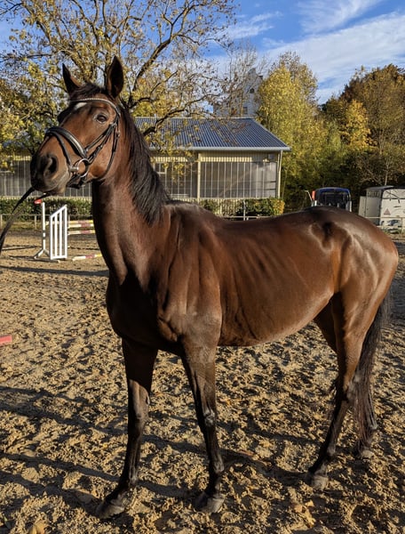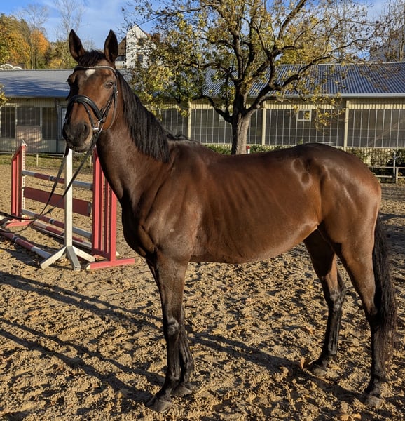 Verkaufe elegante Vollblut-Stute mit Potenzial für mehr. Zum Verkauf steht eine wunderschöne braune Vollblut-Stute, geboren im Jahr 2017. Mit einem Stockmaß von 167 cm hat sie eine ideale Größe. Sie zeigt viel Talent sowie Lernbereitschaft. Besonders gut kann ich sie mir im Springsport vorstellen, da sie einen schönen Sprung macht und ihr das Springen besonders Spaß macht. Sie versucht immer alles richtig zu machen, bleibt nie vor dem Sprung stehen, will immer auf die andere Seite und möchte ihrer Bezugsperson gefallen. Trotzdem ist sie wegen ihrem Rasse Typischen Temperament nicht für Anfänger geeignet, da sie einen sicheren Reiter, der ihr genug Ruhe vermitteln kann, benötigt. Sie zeigt sich an der Longe (auch Doppellonge), sowie bei der Bodenarbeit immer bemüht. Außerdem ist sie Schmiede- und Verladefromm. Eine große AKU mit Röntgenbilder, welche wir vor 6 Monaten durchführen lassen haben, liegt vor. Zähne wurden erst vor ein paar Wochen gemacht. Bei Interesse und für weitere Informationen stehe ich gerne zur Verfügung. Kontaktieren Sie mich, um mehr über dieses vielversprechende Pferd zu erfahren!