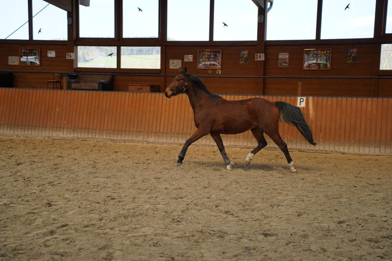 Lucifer – ein junger, vielversprechender Nachwuchs mit bester Einstellung und engem Bezug zum Menschen. Dieser charmante Youngster überzeugt vor allem durch seinen Charakter: äußerst menschenbezogen, aufmerksam und stets bemüht, alles richtig zu machen. Lucifer wurde bisher noch nicht geritten und befindet sich aktuell in der altersgerechten Vorbereitung. Er kennt das Longieren, den Umgang im Alltag sowie die grundlegenden Abläufe im Stall und zeigt sich dabei durchweg brav, neugierig und kooperativ. Besonders hervorzuheben ist seine feine Art: Lucifer ist sensibel, möchte gefallen und sucht aktiv die Nähe zum Menschen. Mit der richtigen Förderung entwickelt er sich zu einem verlässlichen Partner, der für seinen Reiter alles gibt. Seine Bewegungen sind locker und taktsicher, sodass er eine gute Basis für seine weitere Ausbildung mitbringt – egal ob in Richtung Sport oder als gehobenes Freizeitpferd. 🐴 Junger, unverbrauchter Nachwuchs 🐴 Noch nicht geritten – ideale Basis zur eigenen Ausbildung 🐴 Sehr menschenbezogen & aufmerksam 🐴 Möchte gefallen und arbeitet gerne mit 🐴 Brav im Umgang & kennt Longieren 🐴 Vielversprechend für die weitere Förderung ➡️ Lucifer ist ein Rohdiamant für Reiter, die ein Pferd von Anfang an selbst aufbauen möchten und dabei Wert auf Charakter, Vertrauen und Entwicklung legen. 🐴 Erst kennenlernen, dann entscheiden Probereiten ist aktuell noch nicht möglich – ein Kennenlernen sowie Vorstellen an der Hand und beim Longieren jederzeit nach Terminvereinbarung möglich. Preis auf Anfrage Für dieses Pferd nehmen wir gerne seriöse Preisangebote entgegen. Bitte senden Sie uns Ihr Angebot zusammen mit einigen Informationen zu Ihnen und dem geplanten Einsatz des Pferdes. Wir legen großen Wert auf ein passendes Zuhause und behalten uns vor, Angebote abzulehnen, wenn sie nicht dem Ausbildungsstand und der Qualität des Pferdes entsprechen. Der Verkauf erfolgt ausschließlich nach persönlichem Kennenlernen.