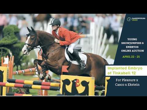1.60m. Grand Prix mare Tinkabell 12 combined with performance genes of For Pleasure! Performance genes of For Pleasure combined with the meritorious Grand Prix mare Tinkabell 12! With Rodrigo Pessoa, this mare jumped to good results at the highest level. For example they ended up second in the 1.50m class and took the 8thplace in the 1.60m Grand Prix (double clear) at CSI5* Lyon. Later she took part in the Nations Cup final in Barcelona under Angelie von Essen, where she ended up second. Granddam Madonna also produced the 1.40m level showjumpers Flinstone (s.Ukato) and Talent (s.Kigali) as well as the international 1.35m jumper G-Star 8 (s.Ukato). This embryo thus comes from an interesting damline from which a number of international horses have already emerged. "Tinkabell has a tremendous ability to jump and elasticity in the jump, very careful and a perfect technique." -Rodgrio Pessoa about Tinkabell 12.