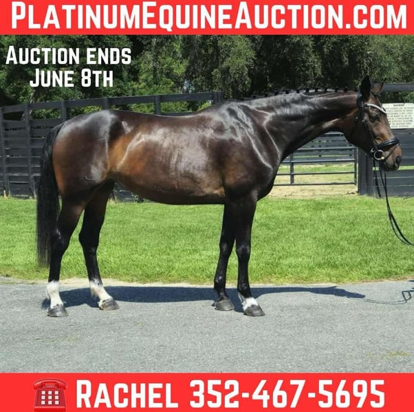 ONLINE AUCTION Place your bids at www.PlatinumEquineAuction.com Starting Bid $3500 Auction ends June 8th, 2025 Need a new saddle? Check out White Rock Saddles on our website or Facebook! Kylee is a 2015 16.2h KWPN registered Dutch Warmblood mare. Her impressive bloodlines include the famous stallions Fiderbach, Ferro, and Donnerhall. Kylee has several years of professional dressage training. She schools 2nd level and has the talent to continue moving up the levels. She has the best lateral work and her trot is smooth and easy to sit. She could be a fun prospect for eventing or hunting. Kylee used to pasture board at a fox hunting estate and is accustomed to the hounds, hunting horns, etc. She is an easy keeper and has always been barefoot with no maintenance. Rides in a gentle snaffle. Kylee is easy to catch, cross tie, groom, tack up, and bathe. She even tries to put the bridle on herself. She loads up nicely and is quiet to haul. Kylee turns out with a gelding and shares a fenceline with a mini horse, donkey, and broodmares. If you have been dreaming of a gorgeous Warmblood to ride or breed, do not miss out on the opportunity to acquire this stunning Dutch Warmblood! She is located in Ocala, Florida with shipping available. If you have any questions please call Rachel with Show Me Sport Horses 352-467-5695. ONLINE AUCTION Place your bids at www.PlatinumEquineAuction.com Starting Bid $3500 Auction ends June 8th, 2025 Need a new saddle? Check out White Rock Saddles on our website or Facebook!