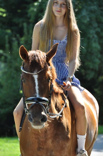 Lilly (Ung. Warmblut) sucht auf diesem Weg ihren Herzensmensch. Sie ist bestens für Anfänger und Kinder geeignet, da sie immer Rücksicht nimmt. Sie ist kein Lampenaustreter sondern eher einen ruhigen gemütlich Charakter. Im Maul ist sie fein zu reiten. Wenn sie etwas neues sieht bleibt Lilly stehen und rennt nicht davon. Sie lässt sich gerne putzen und gibt brav ihre gesunden, robusten Hufe. Longieren und Bodenarbeit sind für Lily kein Fremdwort. Beim Ausreiten geht sie lieber mit einem zweiten Pferd, alleine ist sie eher guckig aber immer händelbar. Sie kennt Boxenstall mit Ganztagsweide aber auch Offenstall. In der Haltung ist sie pflegeleicht, war nie krank, ist geimpft und entwurmt. Lilly darf mit ihrem gesamten Equipment (Dressur- u. Westernsattel, Trense, Putzkoffer u. Decken) in ihr neues zu Hause einziehen. Ich wünsche mir einen liebevollen Menschen für sie der sie liebt und kein Sportpferd in ihr sieht.