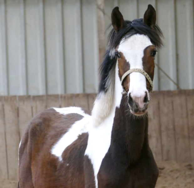 Sehr typvolle gescheckte Jährlingsstute Casey A aus leistungsgeprägter internationaler Springabstammung. Väterlicherseits abstammend von Cadiz (Cordess-Clinton x Heartbreaker x Shakespeare x Potsdam NRW), mütterlicherseits über Zinedine (Guidam x Heartbreaker) und Ismo (Ilasso x First Gotthard x Zeus) – eine international bewährte Springgenetik. Die junge Stute zeigt sich sehr bewegungsstark, elastisch und mit viel Übersicht ausgestattet – beste Voraussetzungen für Springen oder Vielseitigkeit. Neben ihrer sportlichen Perspektive besticht Casey A durch einen ausgeglichenen, menschenbezogenen und sehr angenehmen Charakter.