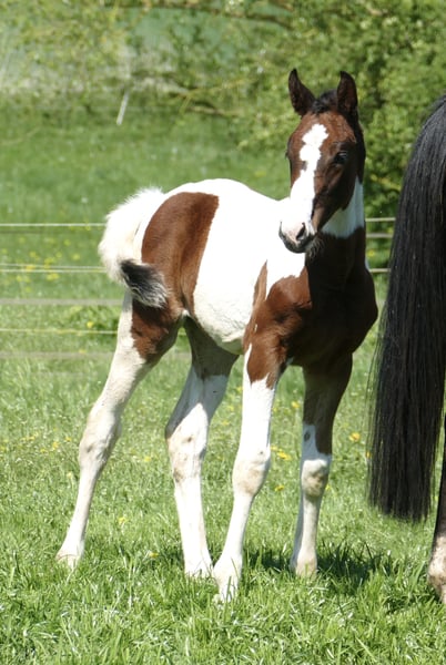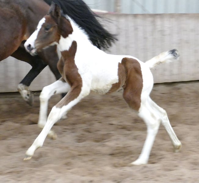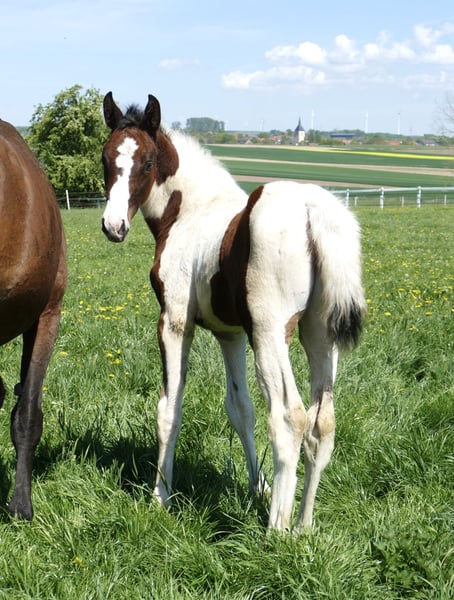 Coralina A - Traumstutfohlen mit bester Springabstammung von Cadiz (Cordess - Clinton x Heartbreaker x Shakespeare x Potsdam NRW) x Ismo (Ilasso x First Gotthard x Zeus) x Cordobes I (Contender x Lancer II x Akkord) x Polany (Polydor). Groß, sportlich, hochinteressant für Vielseitigkeit und Springsport.