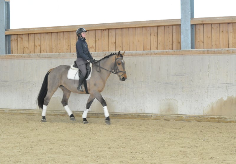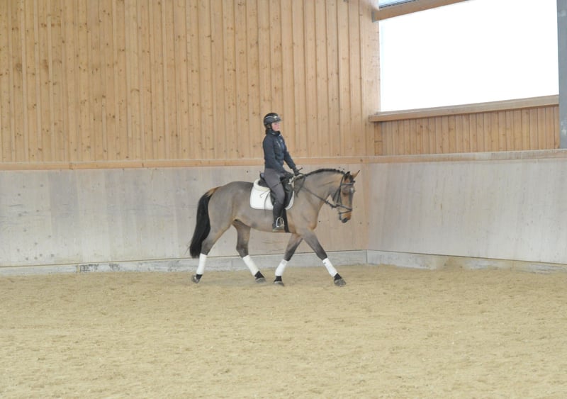 Kompakte, sehr sympathische braune Stute mit bester Allrounderqualität. Schon allein durch ihre liebenswerte und unkomplizierte Art, kann sie durch ihr Wesen punkten. Erst seit kurzem unter dem Sattel zeigt sie sich trotzdem ausgeglichen und nervenstark. Ihre Allrounder- und Reitqualitäten lassen ebenfalls keine Wünschen offen.