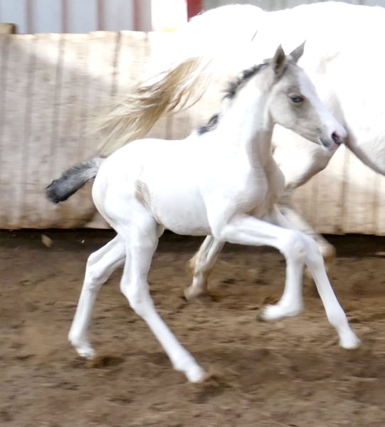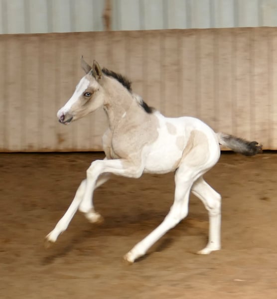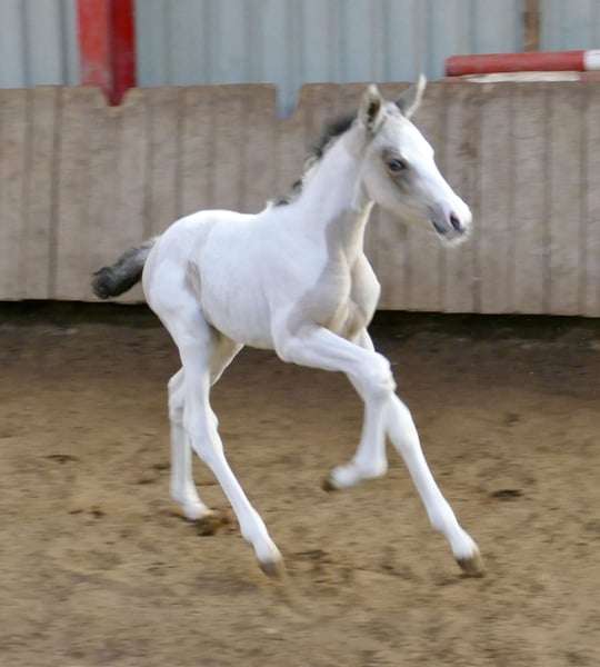 Ice Blue A – ein echter Eycatcher 💙✨ Dieses traumhafte Stutfohlen in edlem Buckskintobiano zieht alle Blicke auf sich. Mit ihrer außergewöhnlichen Farbe, ihrem korrekten Exterieur und ihrem sportlichen Auftreten begeistert sie auf ganzer Linie. Abstammend von Insider x Michelangelo bringt Ice Blue A nicht nur Schönheit, sondern auch jede Menge Qualität für den Sport mit. Ihre Linien machen sie hochinteressant für Springen und Vielseitigkeit – hier wächst etwas ganz Besonderes heran. Ein Fohlen mit Ausstrahlung, Bewegung und Perspektive – einfach zum Verlieben 💖