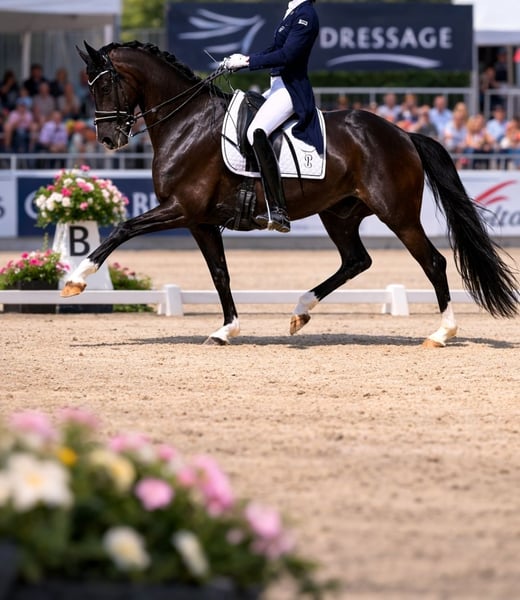 Black Beauty Dream Horse, a truly ideal partner Absolutely reliable and a great schoolmaster A black pearl that couldn't be more beautifully described, captivating with its elegant appearance and exceptionally lovable character. Completely well-behaved and dependable – an ideal school horse for the whole family. Easy to ride, sensitive to aids, and proficient in all dressage movements. Multiple wins and placings in dressage competitions. Additionally, a true all-rounder that also enjoys jumping. With approximately 16.1 hh, a long neck, and a harmonious build, he is a real eye-catcher. In top condition and healthy, regularly vaccinated and dewormed. Regularly shod, but currently running barefoot. Good with the farrier and loading, socially confident. Very people-oriented, affectionate, and easy to handle daily. Always willing to work, motivated, and enthusiastic about his tasks. A horse that makes every day enjoyable and will bring happiness to his new owner. His complete tack, as well as dressage and jumping saddles, can be included upon request. Due to personal reasons, he is offered for a loving new home. The horse is in his prime and in his early twenties. Serious inquiries only, please include your name, phone number, and a brief introduction about yourself for the first impression.