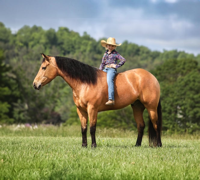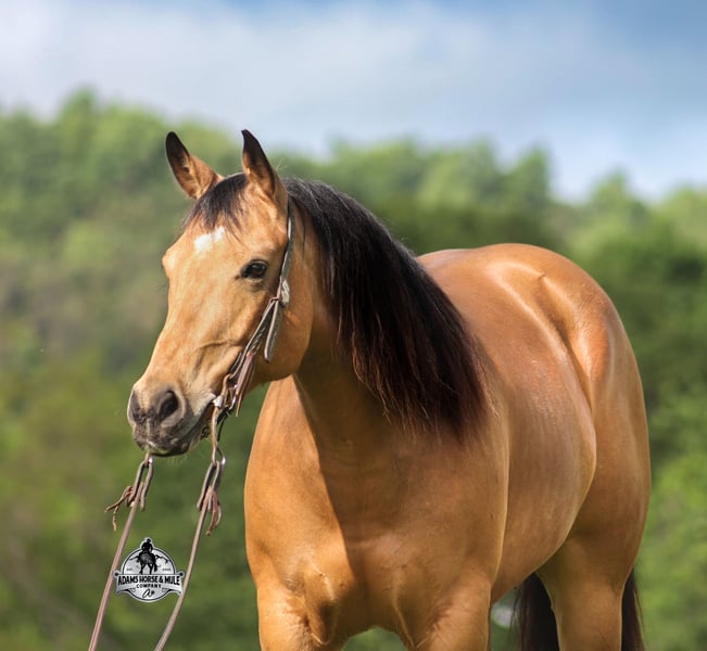 ONLINE AUCTION Place your bids at www.PlatinumEquineAuction.com Starting Bid $3500 Auction ends June 29th, 2025 Need a new saddle? Check out White Rock Saddles on our website or Facebook! SG Zans Thriller will be the thill of your life! Zan is a 15h, stout built, 2020 model registered AQHA, golden buckskin gelding and that golden color goes all the way to his heart! Zan has the color and personality but wait there is more… Zan has a top notch pedigree with Paddys Irish Whiskey on the bottom side and Whimpys Little Step on the top side! He is bred to ride around and bred to do anything involving a cow! But the best part of him is that he is gentle and safe!!! The kids have ridden Zan down the trails and he is going to take care of any rider that is setting on him! He will pack a nervous beginner safely across creeks, over deadfall, up/down steep slopes and he will ensure that they have the most enjoyable ride! Zan has been our 12 year old daughters horse since last year and he has built her confidence levels in so many ways and helped her grow as a horseman. Zan has been ridden around the ranch, he has worked cows, roped and doctored sick ones at the feedlot. He has penned cattle at the stockyards, he has been used at an exotic sale to pen exotic wildlife including all sorts of deer, types of cattle, zebra and buffalo as well. Zan has been ridden at rodeo venues, loaded/unloaded bucking bulls and been ridden in the arena with the stands packed full of spectators. He is a pleasure to ride as he lopes perfect circles on a draped/loose rein, he has a smooth jog, a good stop, spins a circle both ways and backs with ease. If you need a horse that will help build your confidence that will take care of you on the trails or around the ranch and a horse that knows what do in situations where maybe you don’t… Zan is the horse for you! Contact Adams Horse & Mule Co. Eric 606-308-2461 with any questions, to make a buy it now offer, to schedule a time to come see Zan in person or we can do a facetime meet and greet as well. Zan comes with our 2 week satisfaction guarantee, that if he isn’t the right fit just bring him back and exchange him for a horse that suits you better, we want you to be happy so bid/buy with confidence! ONLINE AUCTION Place your bids at www.PlatinumEquineAuction.com Starting Bid $3500 Auction ends June 29th, 2025 Need a new saddle? Check out White Rock Saddles on our website or Facebook!