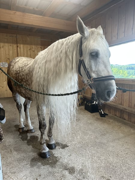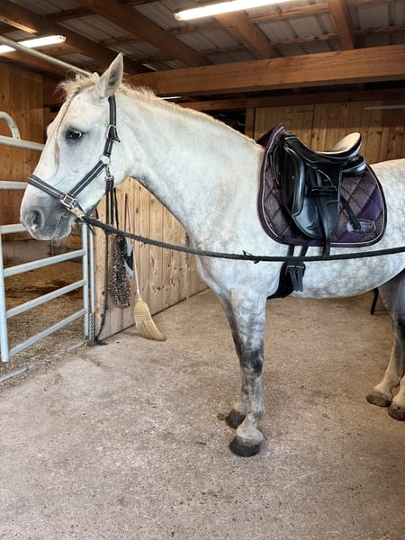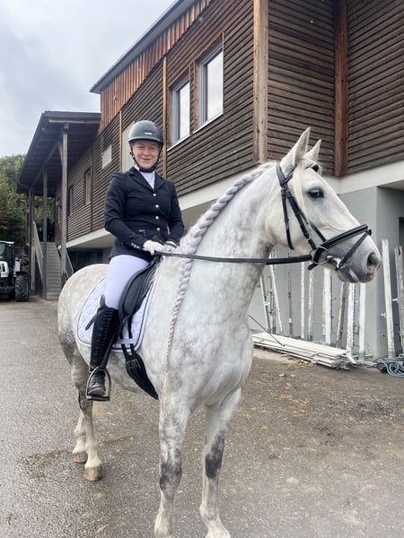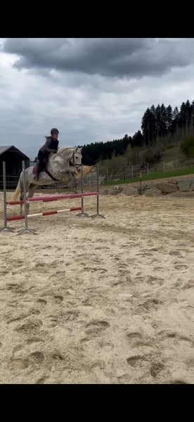 Verkaufe eleganten Warmblut-Wallach – ideal für Dressur! Dieser bezaubernde Apfelschimmel-Wallach wurde im Jahr 2019 geboren und überzeugt durch sein strahlendes Auftreten und seine vielseitigen Einsatzmöglichkeiten. Mit einem Stockmaß von ca. 157 cm ist er perfekt für ambitionierte Reiter. Prince durfte auch schon etwas Turnierluft in der Klasse A schnuppern. Aktuell tasten wir uns im Training in die L Dressur rein. Im Springtraining zeigt er auch sehr viel Motivation und gab mit stets ein sicheres Gefühl. Er ist gesund, regelmäßig geimpft und schmerzfrei. Bei Interesse und für weitere Informationen stehe ich gerne zur Verfügung. Vereinbaren Sie einen Termin für eine Besichtigung und einen Proberitt!