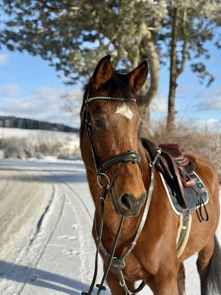 Mando ist ein hübscher, kompakter 2019 geborener Wallach mit hervorragender Abstammung nach Manchester v. Paradijs x Canto. Er ist ca 160 cm groß und damit auch für nicht so große Reiter bzw. Kinder sehr gut geeignet. Der Wallach ist ehr menschenbezogen und brav. Mando eignet sich sowohl für die Dressur als auch für das Springen und natürlich für entspannte Geländeritte. Dieses Pferd ist super verträglich und steht gerne in einer gemischten Herde. Mando ist ein richtiger Allrounder und wird seinen neuen Besitzern viel Freude machen. Weitere Infos gerne per WhatsApp oder telefonisch unter: 00436603632373 Standort: Pelmberg 15/ OÖ Besichtigung und Probereiten gerne nach Terminvereinbarung! Der Transport des Pferdes kann gerne übernommen werden!