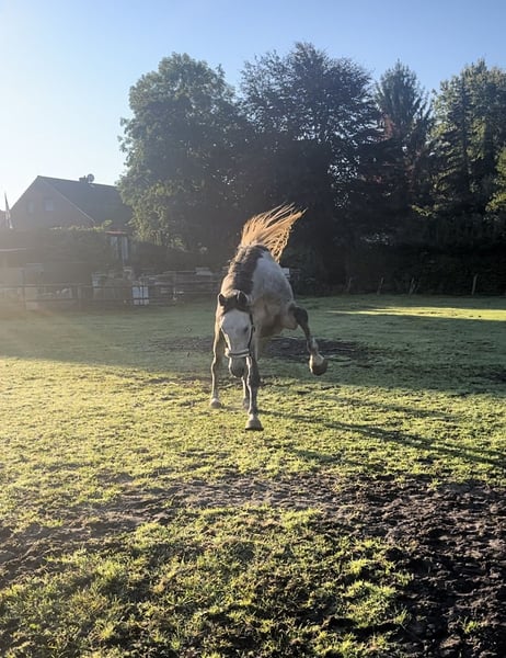 Schweren Herzens zu verkaufen! Ich verkaufe ihn nur , weil er sich mit meinem anderen Pferd nicht versteht und wir sie auf Dauer leider nicht trennen können. Junger Wallach , der bis jetzt hauptsächlich im Gelände ausgebildet wurde freut sich auf eine neue Aufgabe. Regelmäßig geimpft, barhuf (kennt aber auch Beschlag). Auf den Anhänger gehen findet er noch nicht so toll, das muss noch geübt werden. Offenstall sowie Box kennt er. Er geht sowohl alleine als auch in der Gruppe ins Gelände und zeigt sich hier souverän. Im Umgang braucht er ab und zu noch einen Menschen , der ihm die Grenzen zeigt. Er ist dabei aber nicht böse. In der Bahn sind wir gerade dabei an den Basics zu arbeiten , auch hier benötigt er weitere Ausbildung ist aber immer mit Freude und Motivation bei der Arbeit. Ich sehe ihn in Zukunft als Freizeitpferd für einen ambitionierten Freizeitreiter, der sich sein Pferd selber fertig machen möchte. Aufgrund seines Alters und Ausbildungsstandes verkaufe ich ihn nicht als Anfängerpferd.