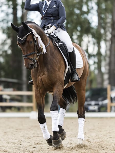 7 yo gelding by Celantus (Cellestial-Catoki) x Quasto Height 177 cm Very light and easy to ride. Has been a school master for his current owner, so suitable for amateurs or juniors. Has a lot of scope, very brave and easy to handle. Also has potential for dressage. Location Finland, transport can be arranged worldwide. More info and videos via Whatsapp.