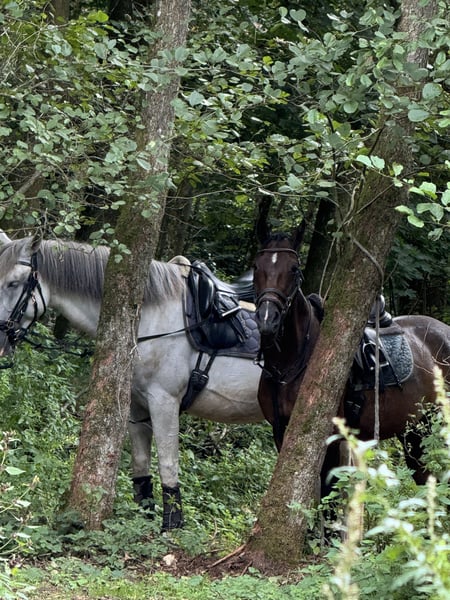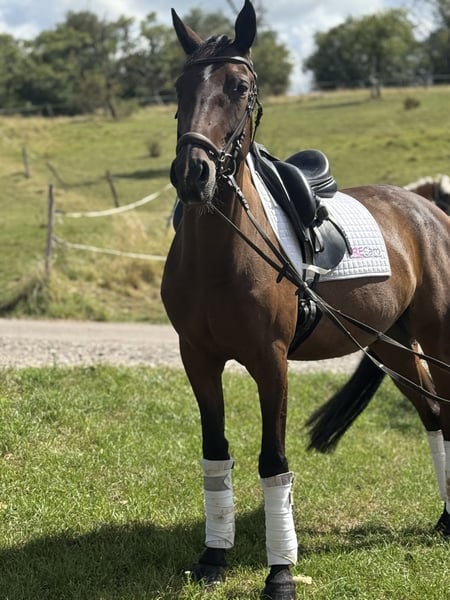 Ce magnifique hongre de 7 ans, mesurant environ 160 cm et d'une élégance remarquable, est prêt à s'amuser dans toutes les disciplines ! Il représente le parfait cheval polyvalent, que ce soit pour le travail en dressage, le saut d'obstacles, le cross, les randonnées équestres, le travail à pied ou même pour aller nager ensemble, il donne toujours 120 % pour son cavalier ! De plus, il a un caractère en or, rayonnant d'une bravoure absolue et d'affection pour sa personne de référence ! Grâce à sa formation de base professionnelle et polyvalente ainsi qu'à son caractère honnête, il convient également aux enfants et aux cavaliers moins expérimentés ! En parfaite santé, il est ferré et transporte sans problème, sans vices ! ➡️ Si besoin, nous offrons à nos clients une période de transition avec du travail monté et des cours d'équitation. N'hésitez pas à nous contacter à tout moment pour toute question ou pour convenir d'une rencontre personnelle : 015202833968 ➡️ Veuillez noter que pour protéger nos chevaux, nous facturons des frais de 45 € pour les présentations et les essais. ➡️ Vous trouverez également plus d'informations sur nos réseaux sociaux : Profil Instagram : PREcaroPferde https://www.instagram.com/precaropferde?igsh=MThzaDBmNTNpdW1mMg%3D%3D&utm_source=qr Profil Facebook : Carolin Nesarajah https://www.facebook.com/share/1AyDKVaDnU/?mibextid=wwXIfr