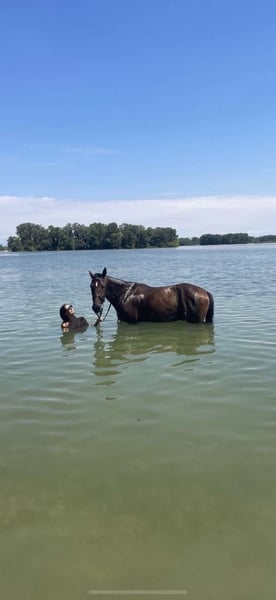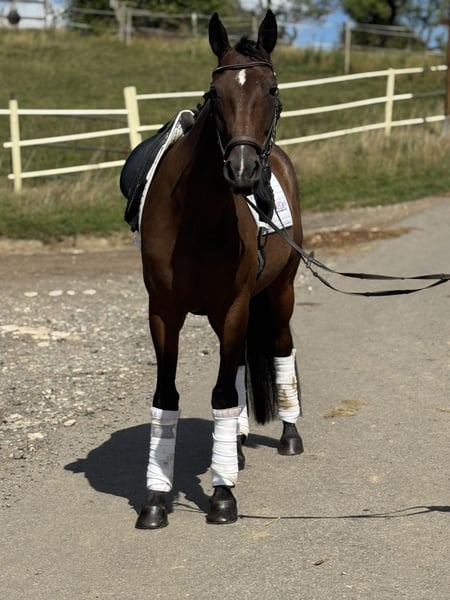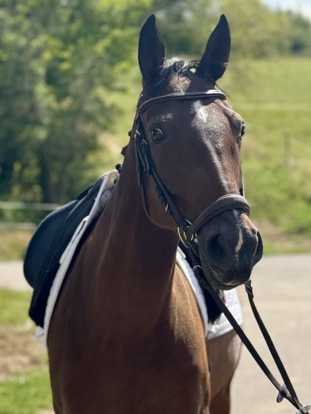 This impressive 7-year-old gelding, standing at approximately 160 cm, is ready for any fun! He represents the perfect all-rounder, whether it’s dressage work, jumping, trail riding, leisure riding, free work, or even swimming together, he always gives 120% for his person! Moreover, he has a character made of gold, radiating absolute fearlessness and affection for his caregiver! Due to his professional and versatile basic training and his honest nature, he is also suitable for children and less experienced riders! In perfect health, well-behaved for the farrier and loading, no vices! ➡️ If needed, we offer our customers a transition period with training and riding lessons. Feel free to contact us anytime for further questions or to arrange a personal meeting: 015202833968 ➡️ Please note that to protect our horses, we charge a fee of €45 for presentations and trial rides. ➡️ You can also find more information on our social media channels: To the Instagram profile: PREcaroPferde https://www.instagram.com/precaropferde?igsh=MThzaDBmNTNpdW1mMg%3D%3D&utm_source=qr To the Facebook profile: Carolin Nesarajah https://www.facebook.com/share/1AyDKVaDnU/?mibextid=wwXIfr