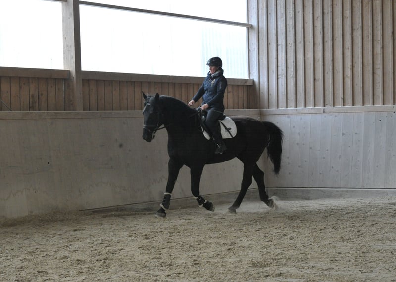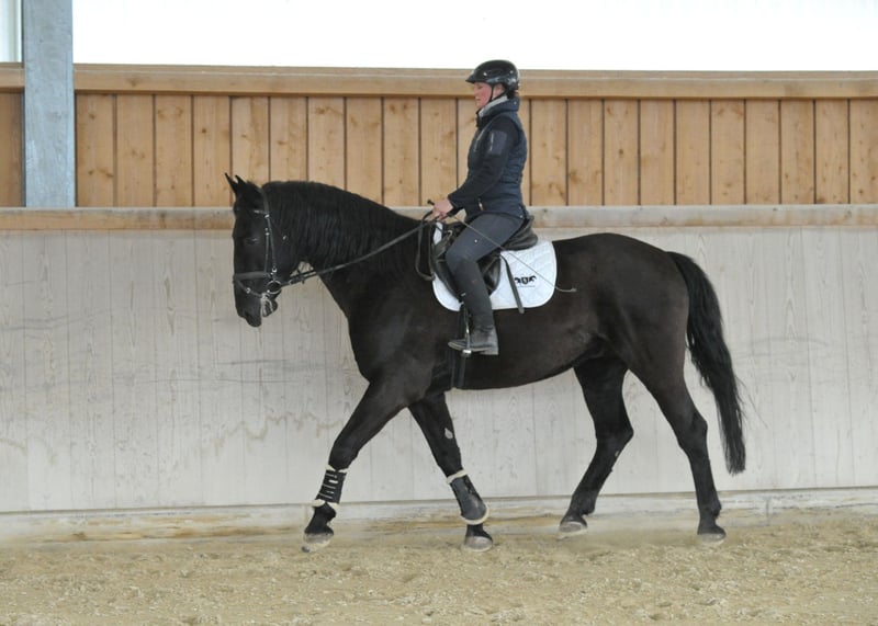 Centurius ist ein auffälliger großrahmiger Rappwallach mit angenehmen Sitzkomfort. Bestens geeignet als Freizeitpferd und für`s Gelände. Toller Allrounder für den vielseitigen Einsatz.