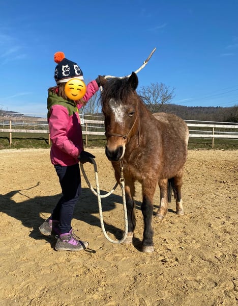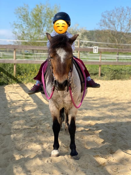 Für unser Schulpony ‚Queenie‘ suchen wir einen liebevollen Endplatz, an dem sie gekuschelt, gepflegt und von Kindern umsorgt und geritten wird. Auf ihr haben schon unzählige Kinder das Reiten gelernt. Aber nun ist es Zeit sie ein privates Zuhause abzugeben, da wie unsere Schulpferde nicht bis zuletzt ausnehmen möchten. Sie hat immer einen zuverlässigen Job gemacht und hat sich nun ihre Familie verdient. Queenie ist sehr brav, geht alleine und als Handpferd ins Gelände, ist verkehrssicher, schmiede- und verladefromm und lebt in einer grossen gemischten Offenstallherde. Sie ist in allen Belangen einfach nur unkompliziert und grossartig.