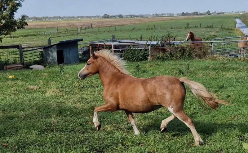 Meet Nesse's Davina, a stunning 2-year-old A-pony mare with great potential! Davina was foaled in April 2023 and has had limited handling so far. Currently, she is grazing in the pasture with another yearling mare (also available for sale if interested). Are you interested or would you like more information? Please contact Peter de Korte at +31 6 20967417.
