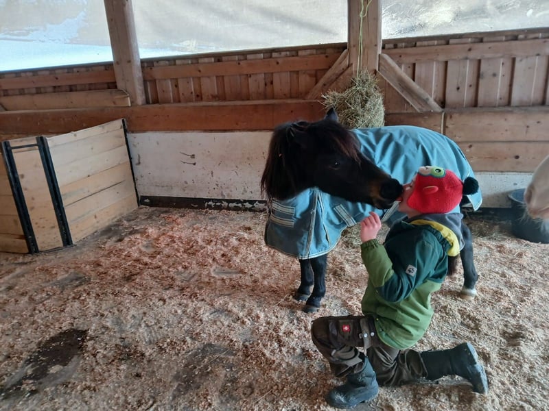 Unser kleiner Schatz sucht ein neues Zuhause da unser Sohn leider zu groß geworden ist. Er liebt es von Kindern geputzt geknuddelt und geritten zu werden. Er zeigt bei uns keine Unarten, er lebt im Offenstall in einer gemischten Herde. Jordi hat einen Holländischen Pass. Alters entsprechend kennt er Cavaletti, Führzügel, Longe. Wir gehen mit ihm geführt auch alleine ins Gelände was er ganz prima meistert. Jordi ist eher Ranghoch, was im Umgang aber keine Probleme macht.